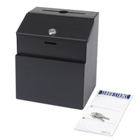 Descriptionproduct Descriptionsafco Products 4232Bl Steel Suggestion Box, Black : Outdoor Lock Mail Box : Office Productsfrom The Manufacturerideal For Business Use, The Safco Steel Suggestion/Key Drop Box Comes With A Locking Top To Secure Contents And Ensure Confidentiality. Designed For Use As A Comment Box Or An After Hours Drop Box, This Box'S Secure Door Comes With A Lock And Two Keys, And Its Slot Features A Circular Cut To Accept Keys. This Box Can Be Mounted On A Tabletop Or Wall (Includes Mounting Hardware), And Comes With A Built-In Pen And Comment Card Pocket. Measuring 6 X 7 X 8-1/2 Inches, This Box Includes A Pack Of 25 Suggestion Cards.