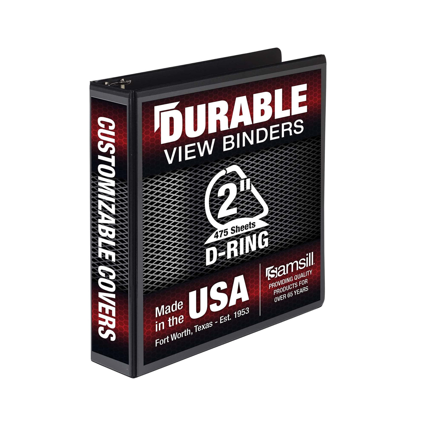 Samsill Durable 2 Inch Binder, Made In The Usa, D Ring Binder, Customizable Clear View Cover, Black, Holds 475 Pages