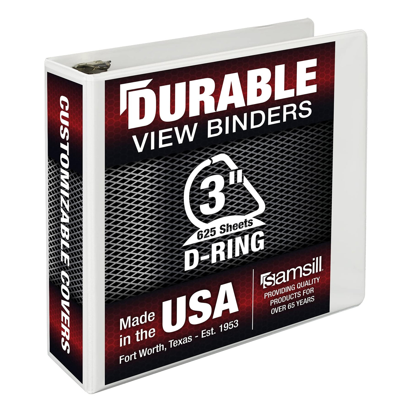 Samsill Durable 3 Inch Binder, Made In The Usa, D Ring Binder, Customizable Clear View Cover, White, Holds 625 Pages