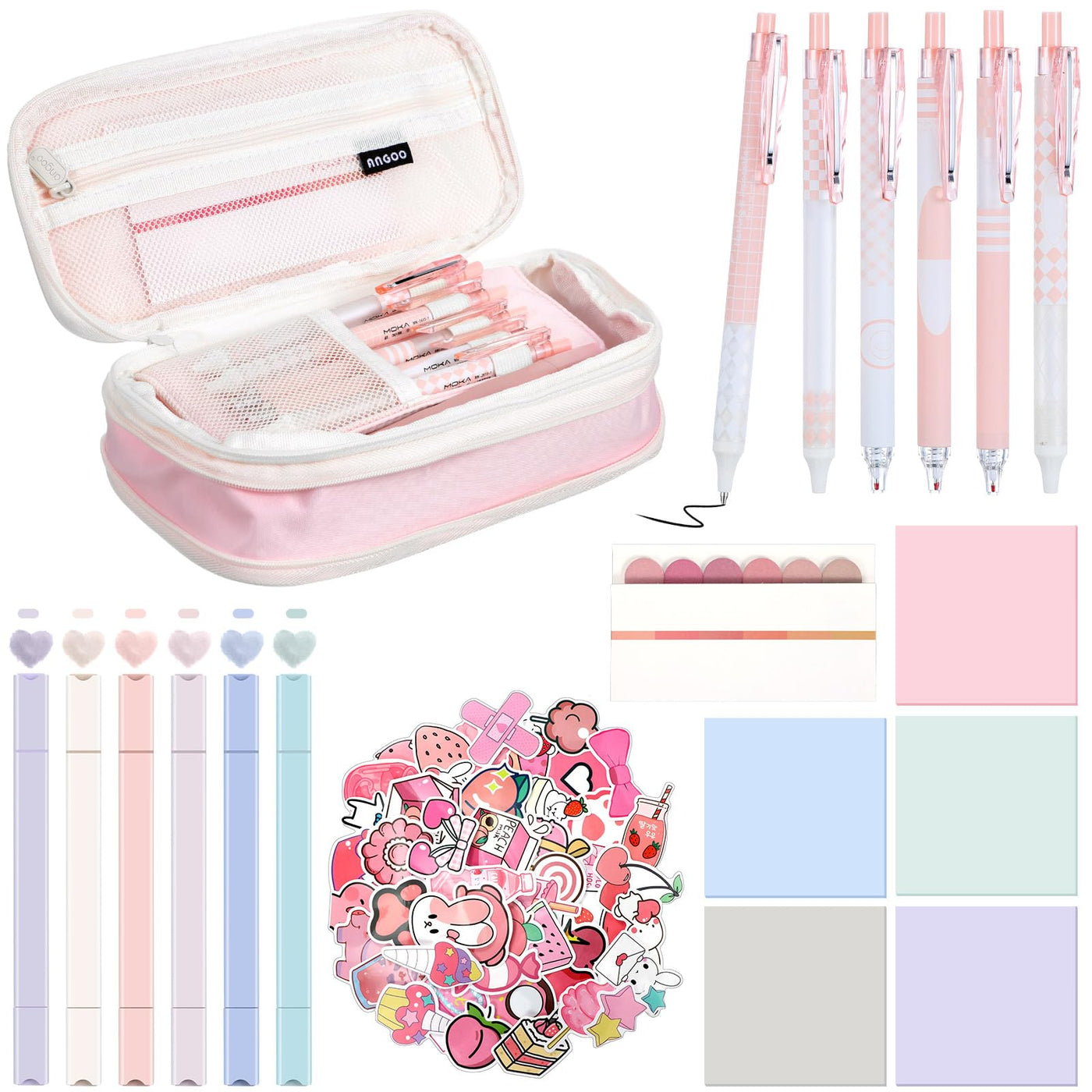 Seajan 69 Pcs Aesthetic School Supplies Set Include Big Capacity Pen Case Bag 6 Aesthetic Highlighters 6 Retractable Gel Ink Pen