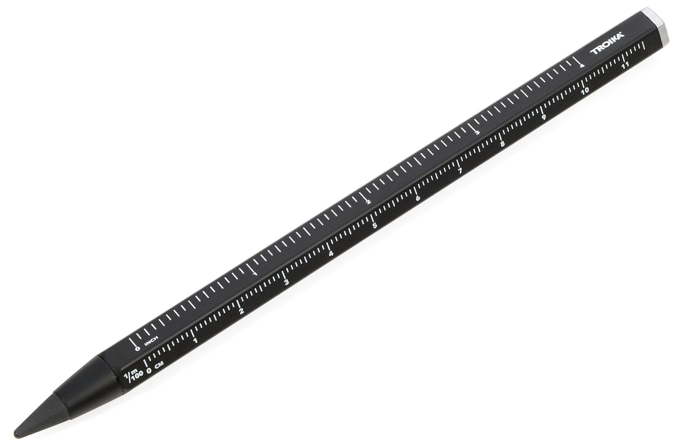 Troika Multi Tasking Pencil With Sustainable Continuous Aluminium And Metal Tip Black Interchangeable Erasable With Centimeter/I