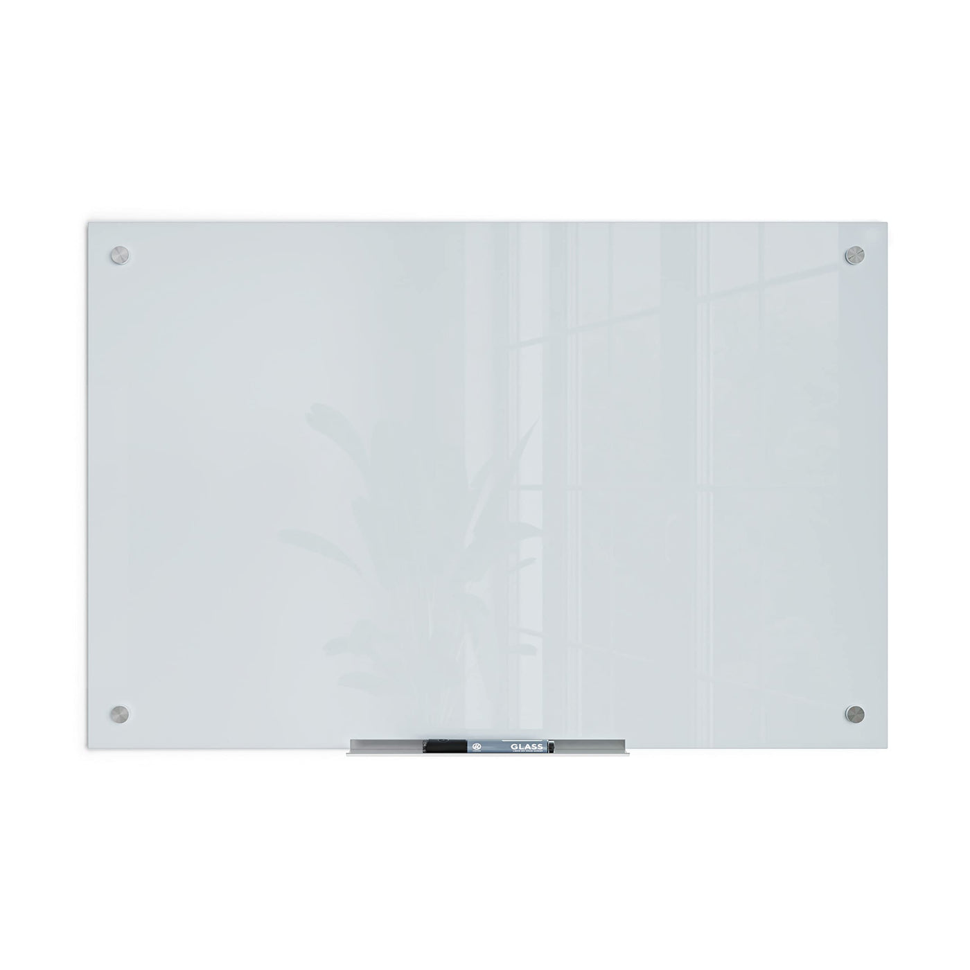 U Brands Glass Dry Erase Board, 35'X23', White Frosted Surface With Silver Grommets, Frameless, Includes Marker With Eraser