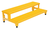 Step-Mate Stands Can Be Used As Either A Comfortable Worker Platform Or A Semi-Permanent Step. Individual Step Size Is 12' Deep. Top Step Is Fixed 7' Higher Than Bottom Step. Serrated Steel Surface Ensures Safe Footing. Legs Adjust Individually By Screwing Them Into Or Out Of The Leg Base. Powder Coated Safety Yellow Finish. Welded Steel Construction. Uniform Capacity 500 Lbs. Measures 48' Width By 24' Depth.