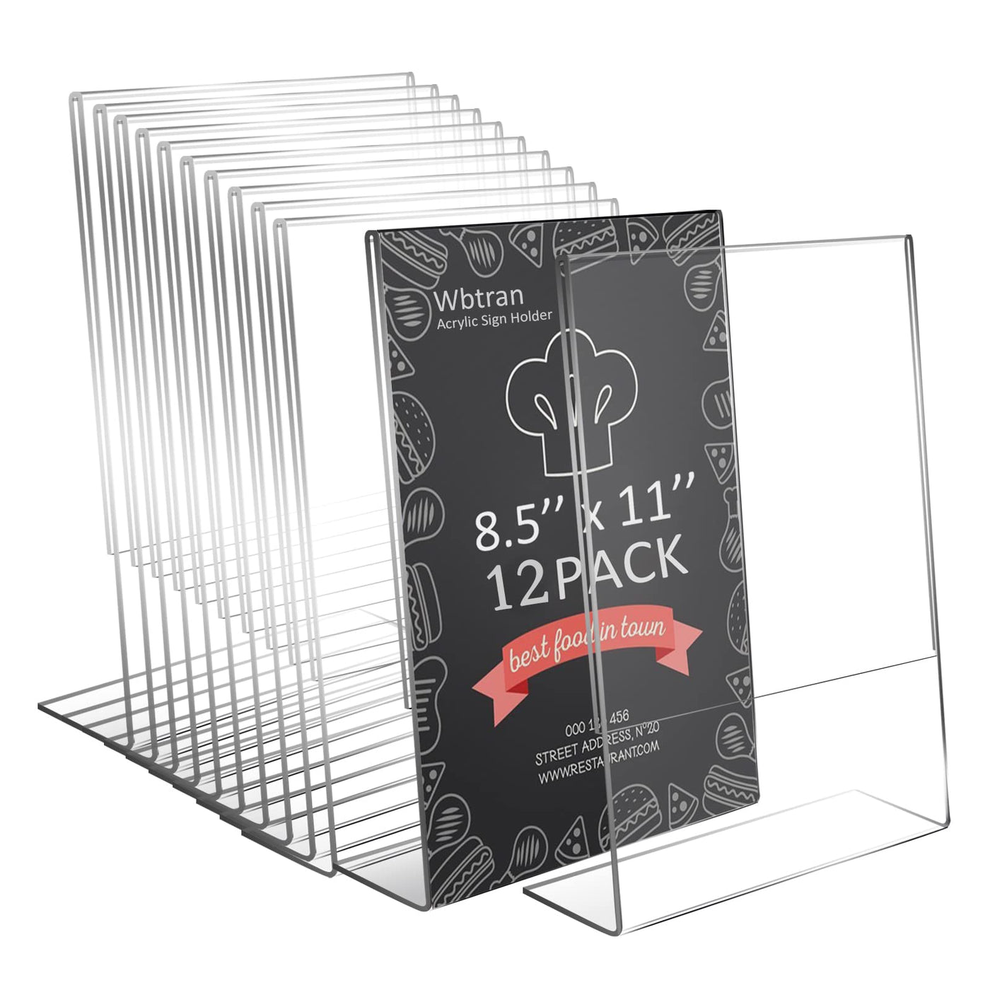 Wbtran Acrylic Sign Holder 8.5 X 11 - Clear Tabletop Sign Holder - Slanted Back Acrylic Stands For Display 8.5X11 Inch - Plastic
