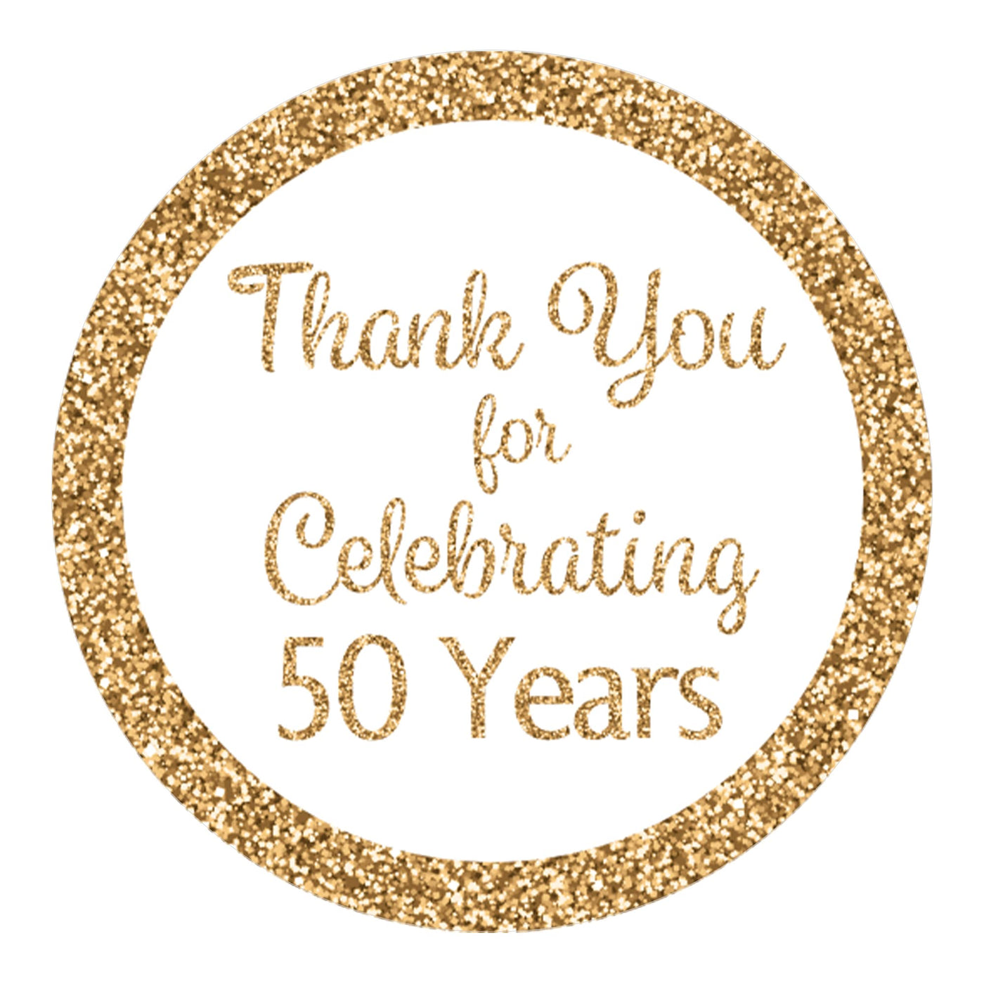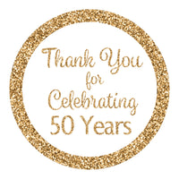 Celebrating 50 Years Thank You Stickers: 40 Stickers. Stickers Included Only. Stick Them On: Mini Candle Lids, Favor Bags And Boxes, Or Glass Jars. Stick On Large Candy Such As Chocolate Peanut Butter Cups Or Peppermint Chocolate Patties. People Also Use As: Envelope Seals Or Scrapbook Stickers. Printed Design - Not Glitter, Not Foil. Proudly Made In The Usa.