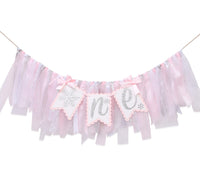 Winter Onederland High Chair Banner For 1St Birthday - Snowflake Highchair Banner, Silver Glitter And Pink Tulle Ribbon Banners,