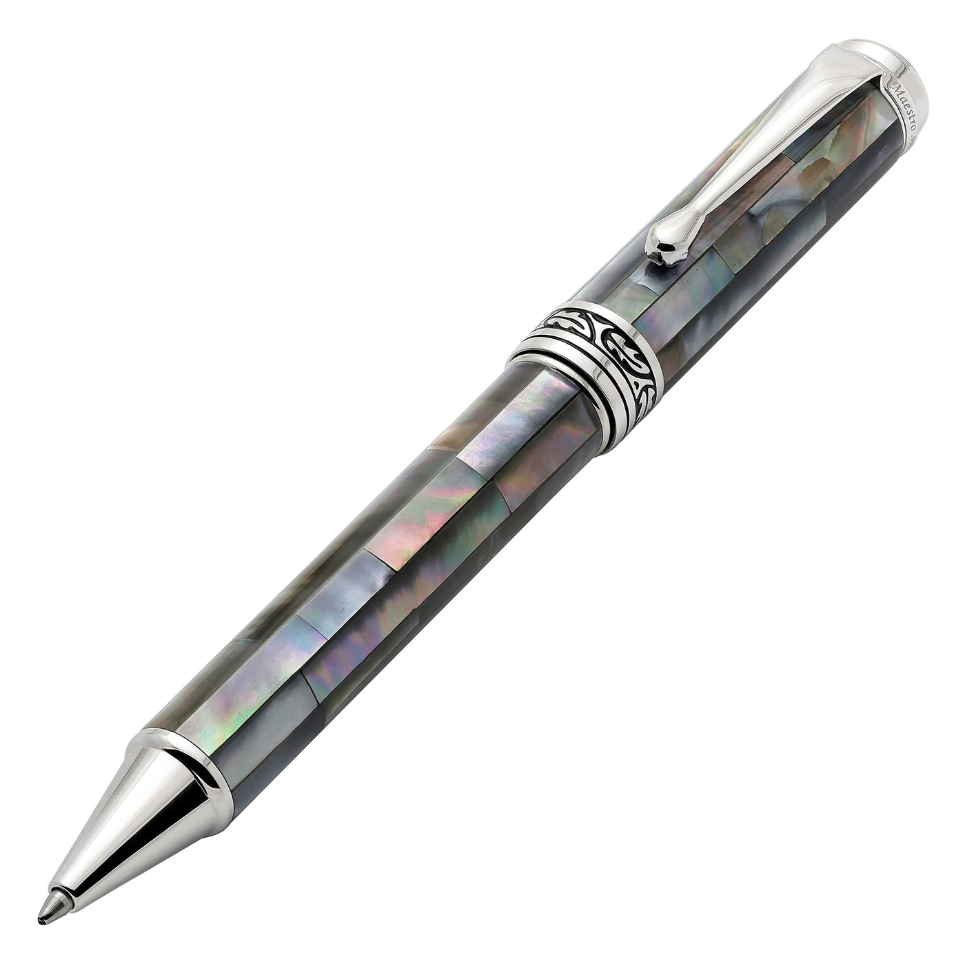 Xezo Maestro Twist Action Ballpoint Pen, Medium Point. Black Mother Of Pearl With Platinum Plating. Handcrafted, Limited Edition