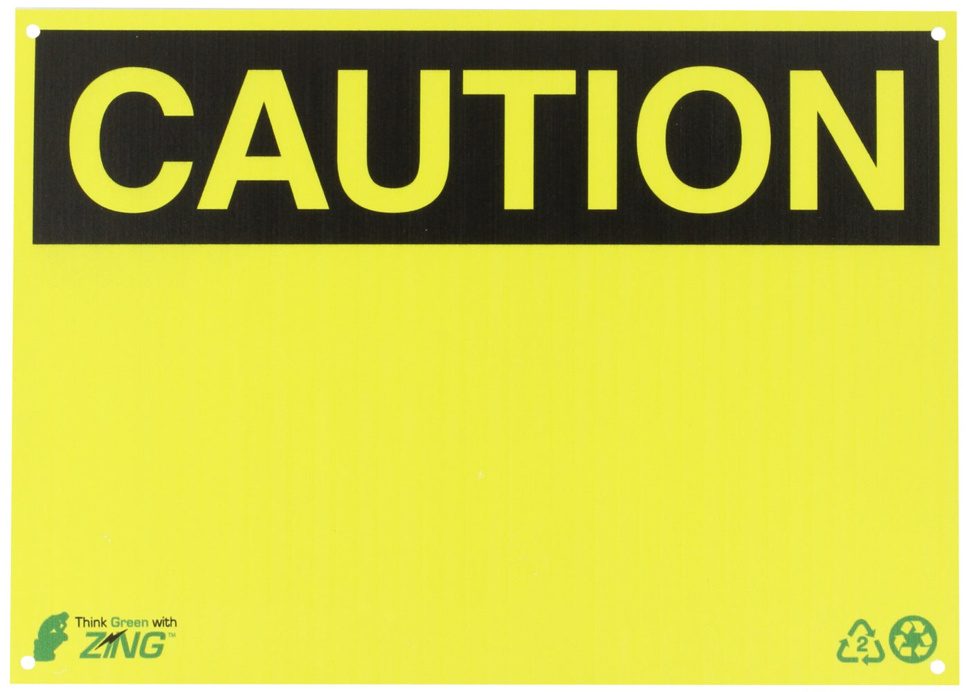 Protect People And The Environment With Eco Safety Sign 'Caution' Blank And Other Zing Green Safety Signs That Inform Of Danger, Notice And Caution Areas. Sign Is Made Of 70% Post Consumer Recycled Plastic With 4 Mounting Holes And Mounting Adhesive Tabs. Recycled Material Supports Leed Accreditation. Sign Measures 10'H X 14'W. Made In The Usa. Green Certifications: Ul Validated For Recycled Content.