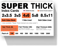 100 Super Thick Index Cards/ 4'X6' / 14Pt (0.014') 100Lb / Blank Un-Ruled/Archival Acid-Free