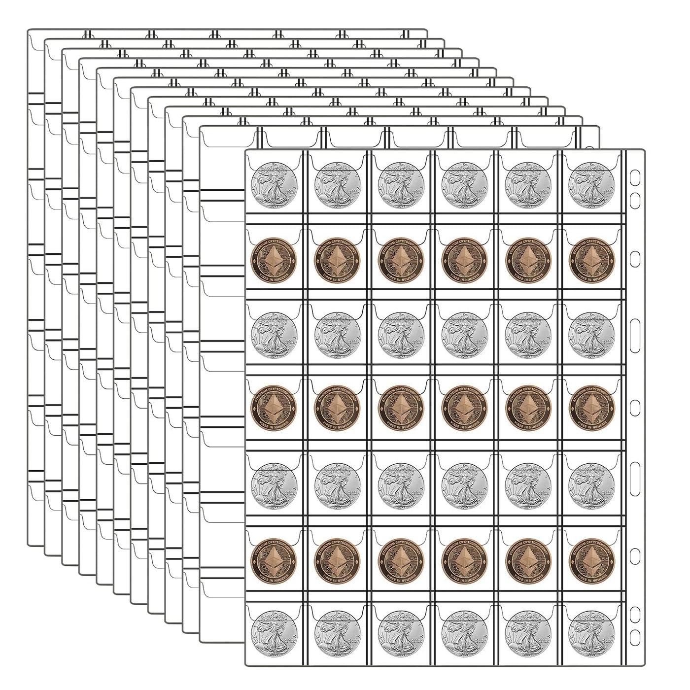 12 Sheets Coin Collection Supplies Pages, Collecting Book Album Protectors Sleeves With Standard 9 Hole For Coin Binder, Currenc