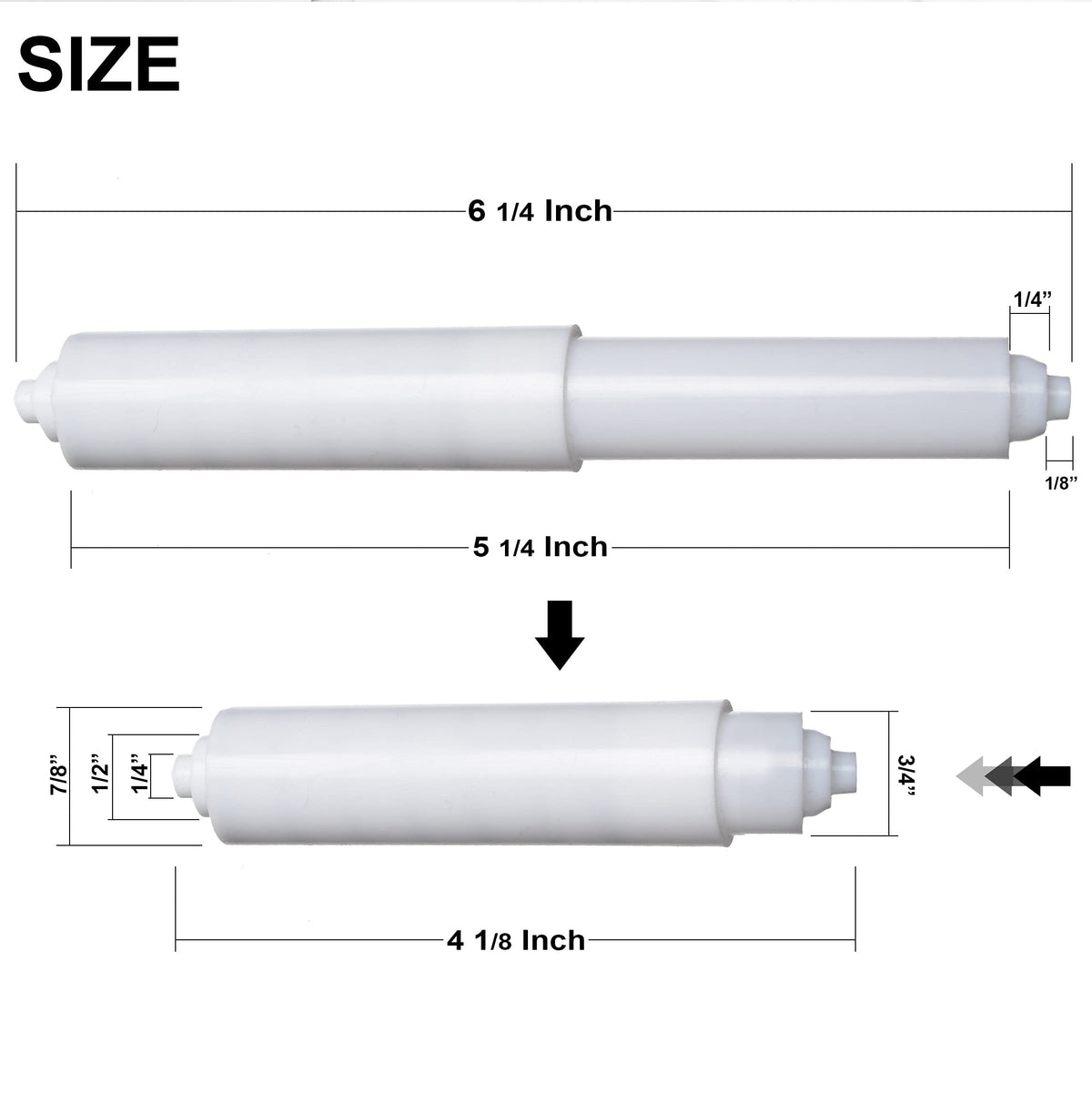 Compact Dimensions: Measures 6-1/4 inches in length and 7/8 inches in diameter, suitable for various types of bathroom setups.