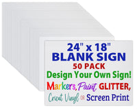 24X18 Blank Corrugated Plastic Yard Signs, Waterproof, Heavy Duty Outside Bulk White Sign Boards (50 Pack - White 24X18)