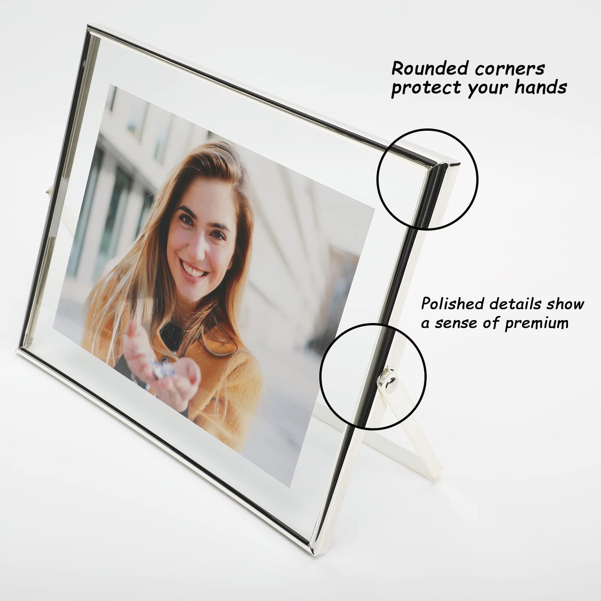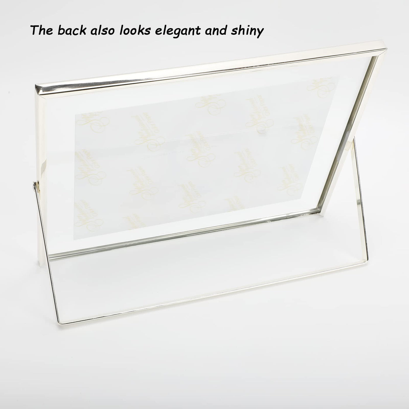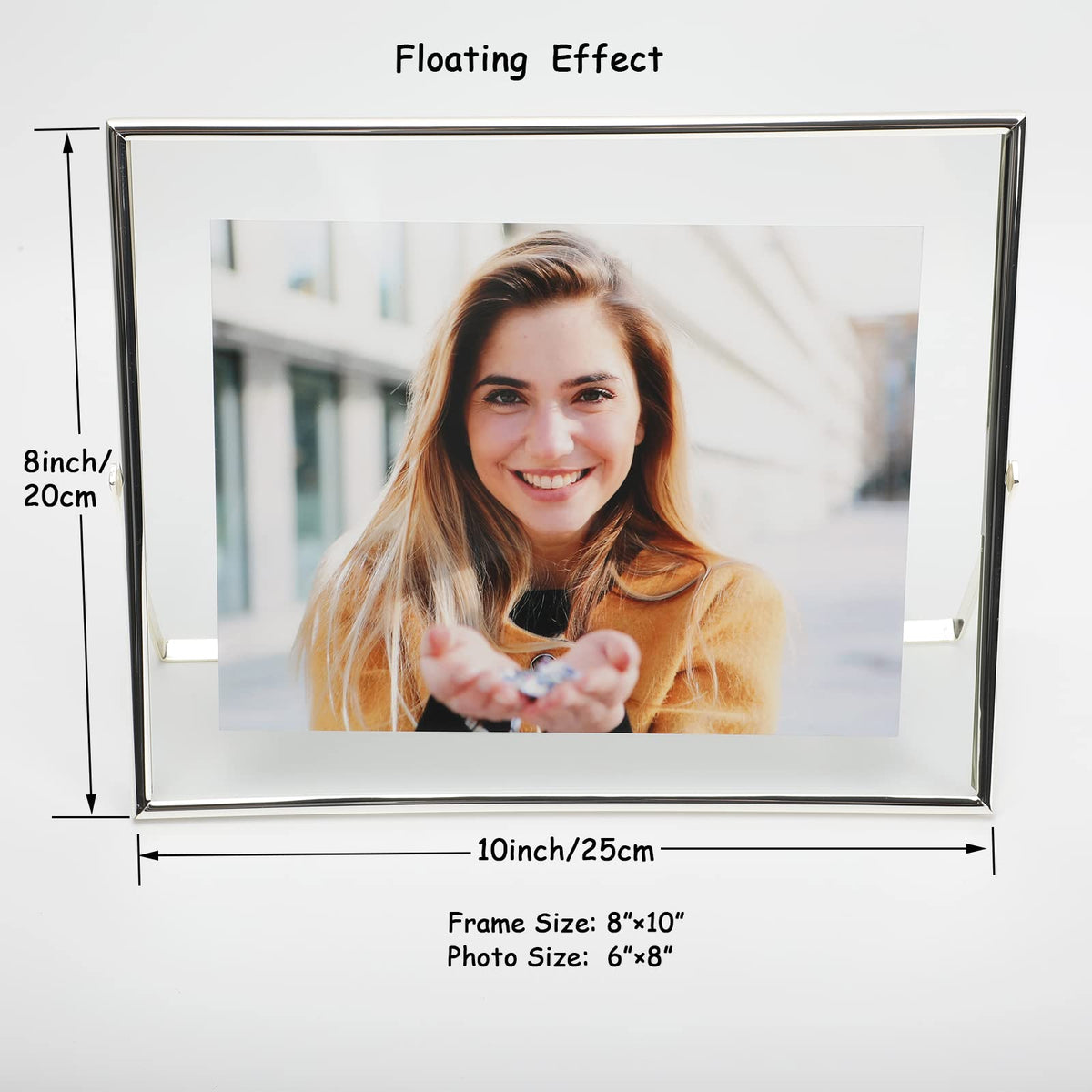 Ahago Silver Floating Frame(8'' 10'', Horizontal), For Picture Sizes 7X9, 6X8, 5X7, Tabletop Shelf Photo Frames, Classy Gift Fo