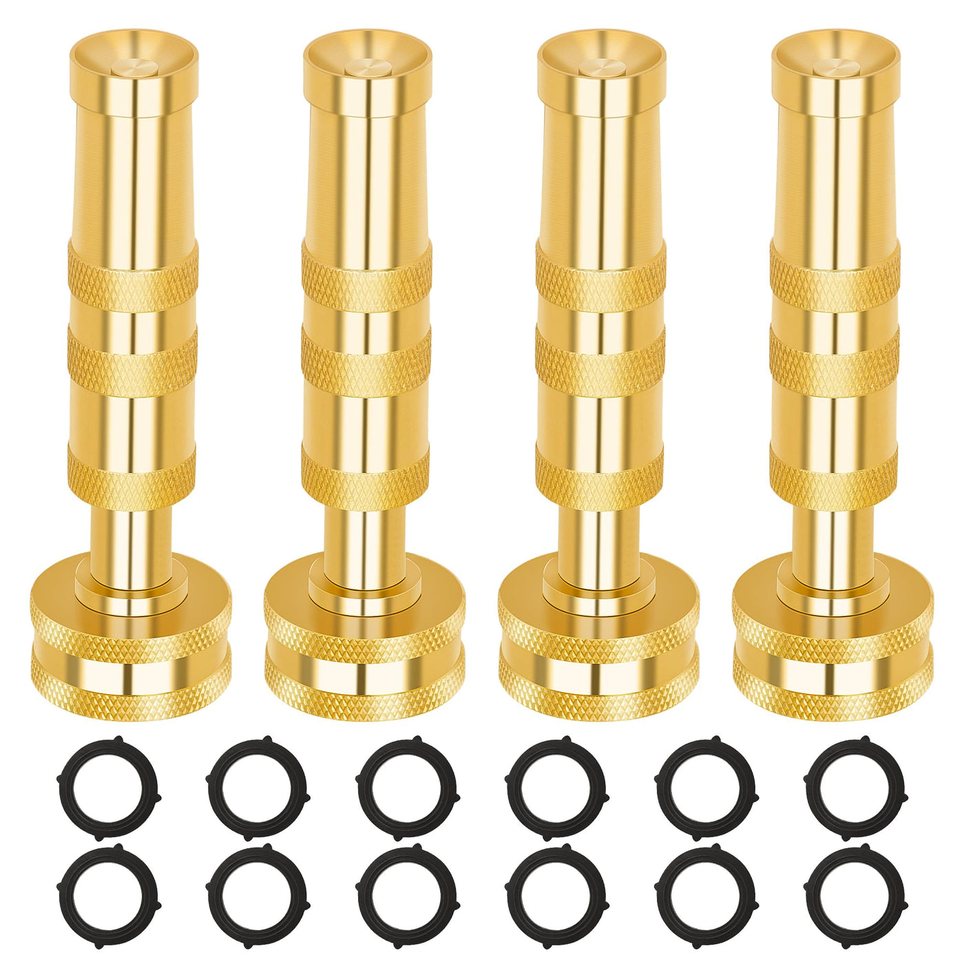 Automan Brass Hose Nozzle - High Pressure Jet Nozzles 4 Pack, Heavy Duty Sprayer For Garden Hoses, Adjustable Spray Gun, Solid Twist Water Hose Nozzle For Patio, Lawn, Car Wash, Extra 12 Rubber Washers