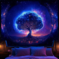 Avinyl Blacklight Tree And Space Tapestry For Bedroom, Aesthetic Cool Black Light Tree Of Life Tapestries For Girl, Fantasy Star
