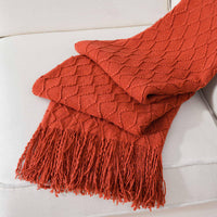 Battilo Home Rust Orange Throw Blanket For Couch, Knit Fall Throw Blanket With Tassel, Boho Throw Blanket Fall Decor, 50 'X60 '