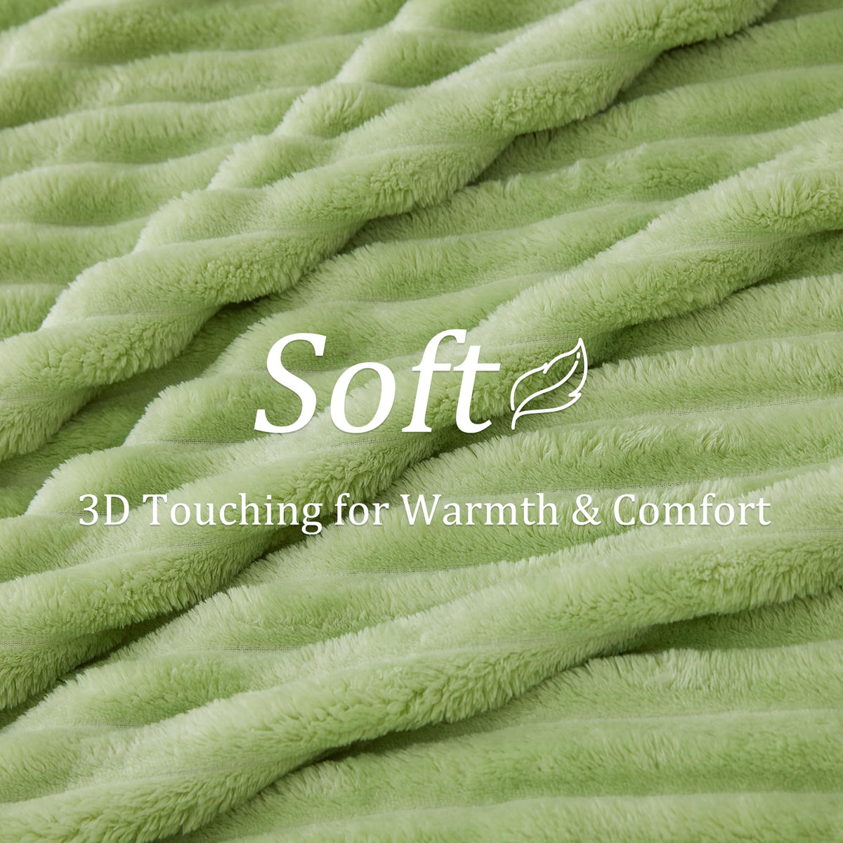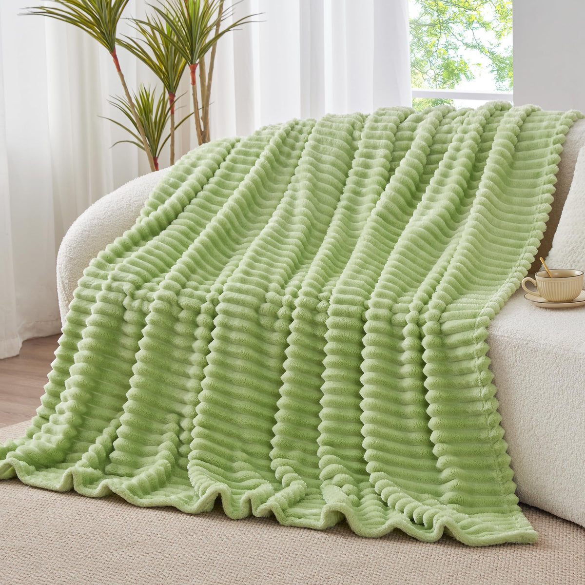 Bedelite Fleece Throw Blanket For Couch, 300Gsm Soft & Warm Fluffy Twin Spring Blanket, Decorative And Giftable Striped Sage Green Blankets For Women, Men, 60''X80''