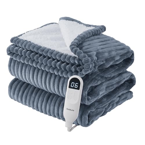 Bedsure Electric Blanket Full Size - Soft Ribbed Flannel Gentlesoft Heated Blanket With 6 Heat Settings, Heating With 10 Time Settings, 8 Hrs Timer Auto Shut Off, Gift For Grandma (72X84 Inches, Grey)