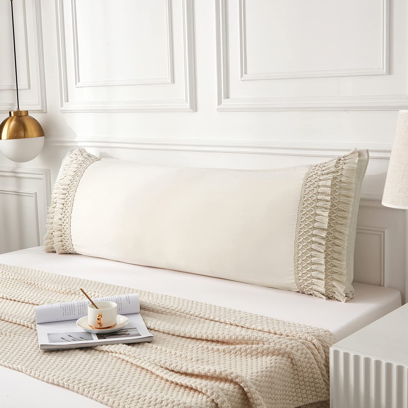 Beige Tassel Body Pillow Cover 20X54 Body Pillow Cover Boho Chic Macrame Tassel Decor Body Pillow Cover With Pocket Closure