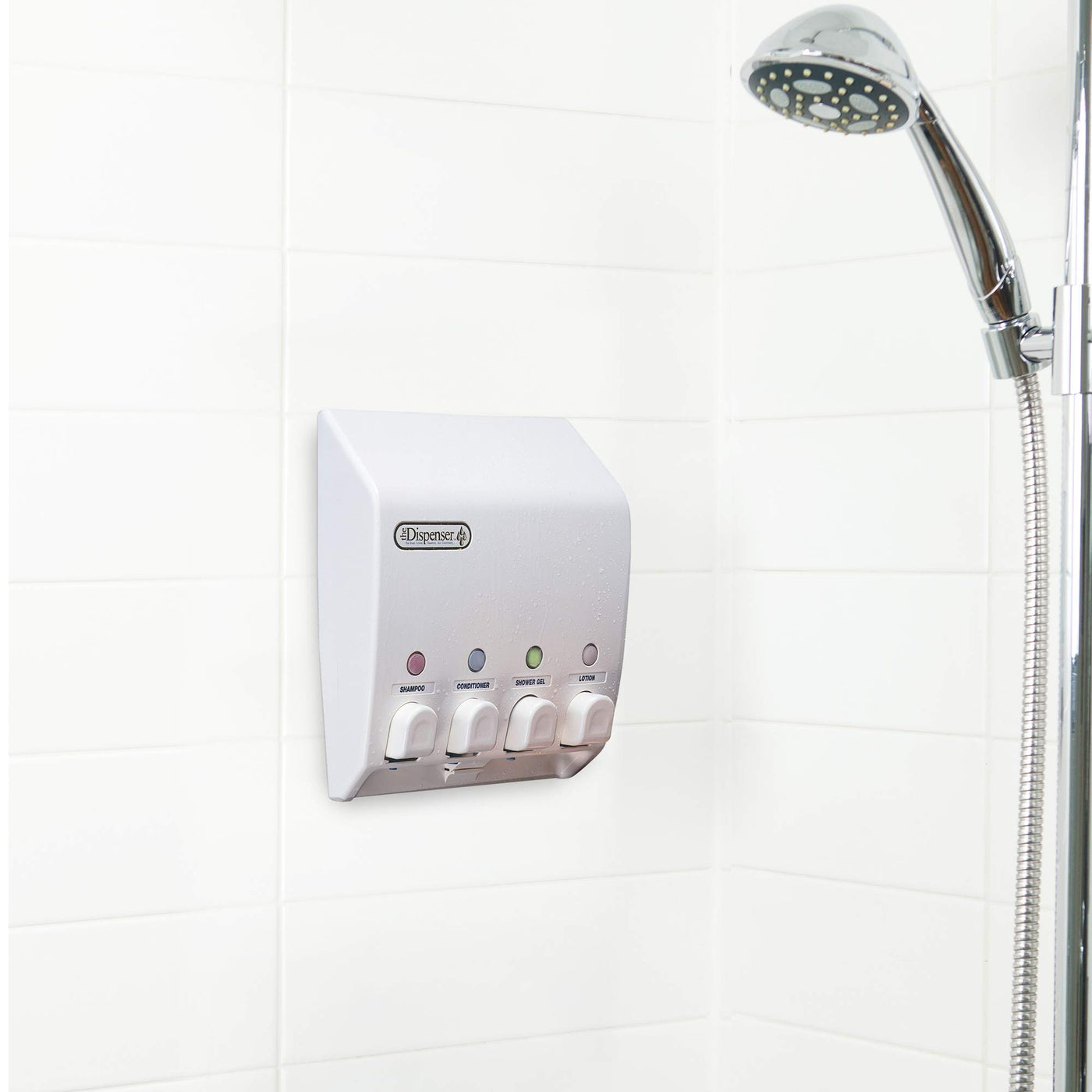 Better Living Classic Shower Dispenser - 4-Chamber Shampoo & Soap Dispenser, 4 x 14.5 fl. oz., White, Compact Design for Bathroom