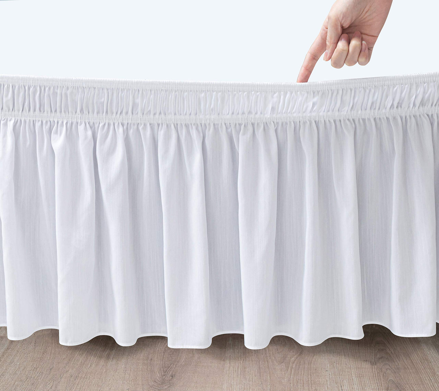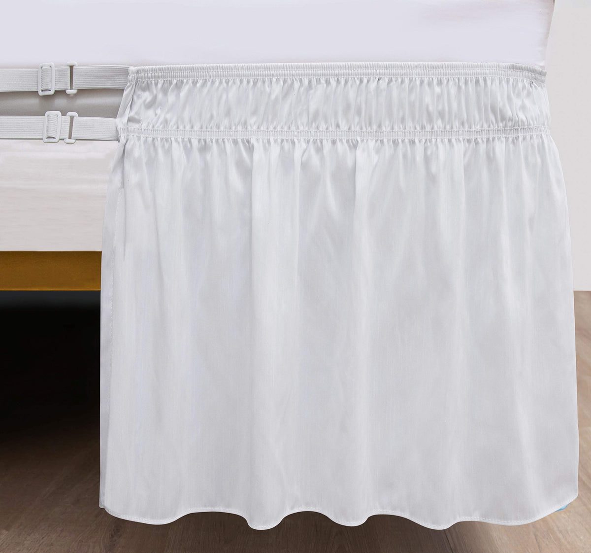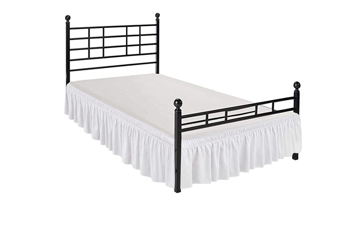 Biscaynebay Wrap Around Bed Skirts With Split Corners For Queen Beds 12' Drop, White Elastic Dust Ruffles Easy Fit Wrinkle & Fade Resistant Silky Luxurious Fabric Solid Machine Washable
