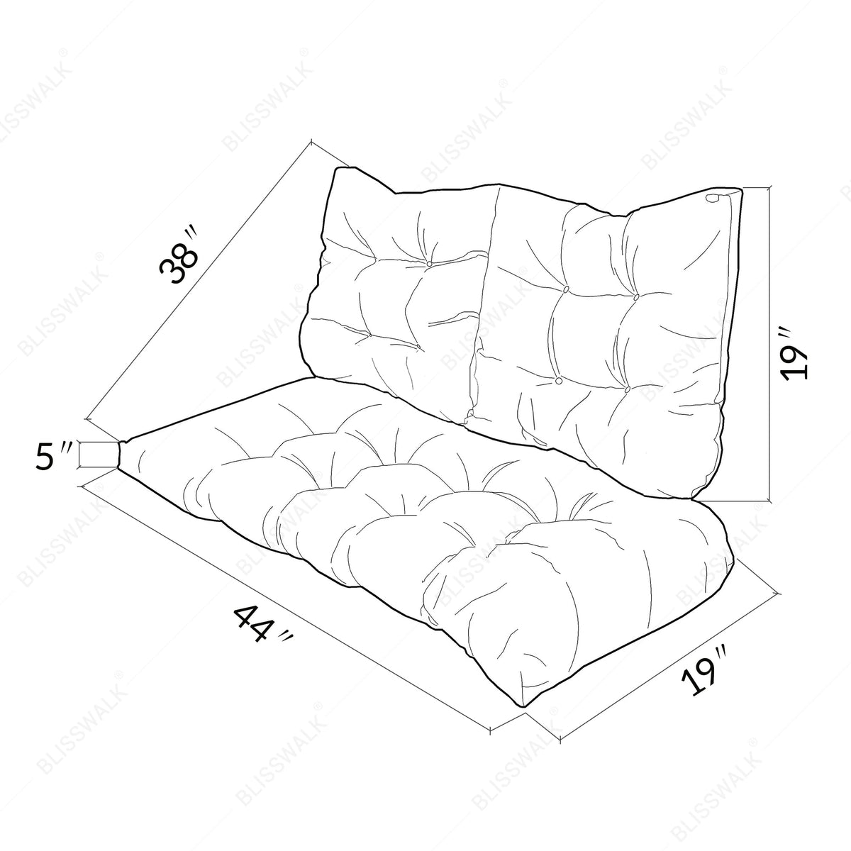 Blisswalk Outdoor Chair Cushions,3 Pieces Wicker Cushion Set Set,44'X19'X5',Tufted Loveseat Outdoor Cushions For Patio Furnit