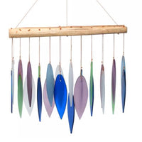 Blue Handworks Mountain Ridge Glass Chime, Sandblasted Glass And Found Wood Handcrafted Wind Chime