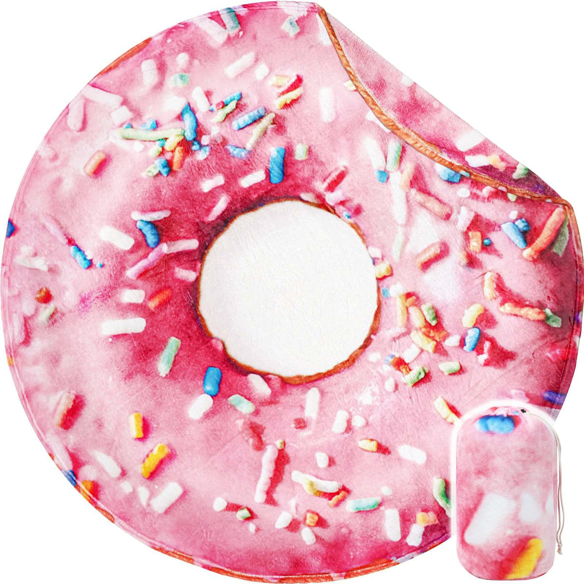 Bnuitland Pink Donut Blanket,300Gsm Double Sided Giant Funny Gift Throw With Donut Pouch,Realistic Super Soft Taco Food Blanket,