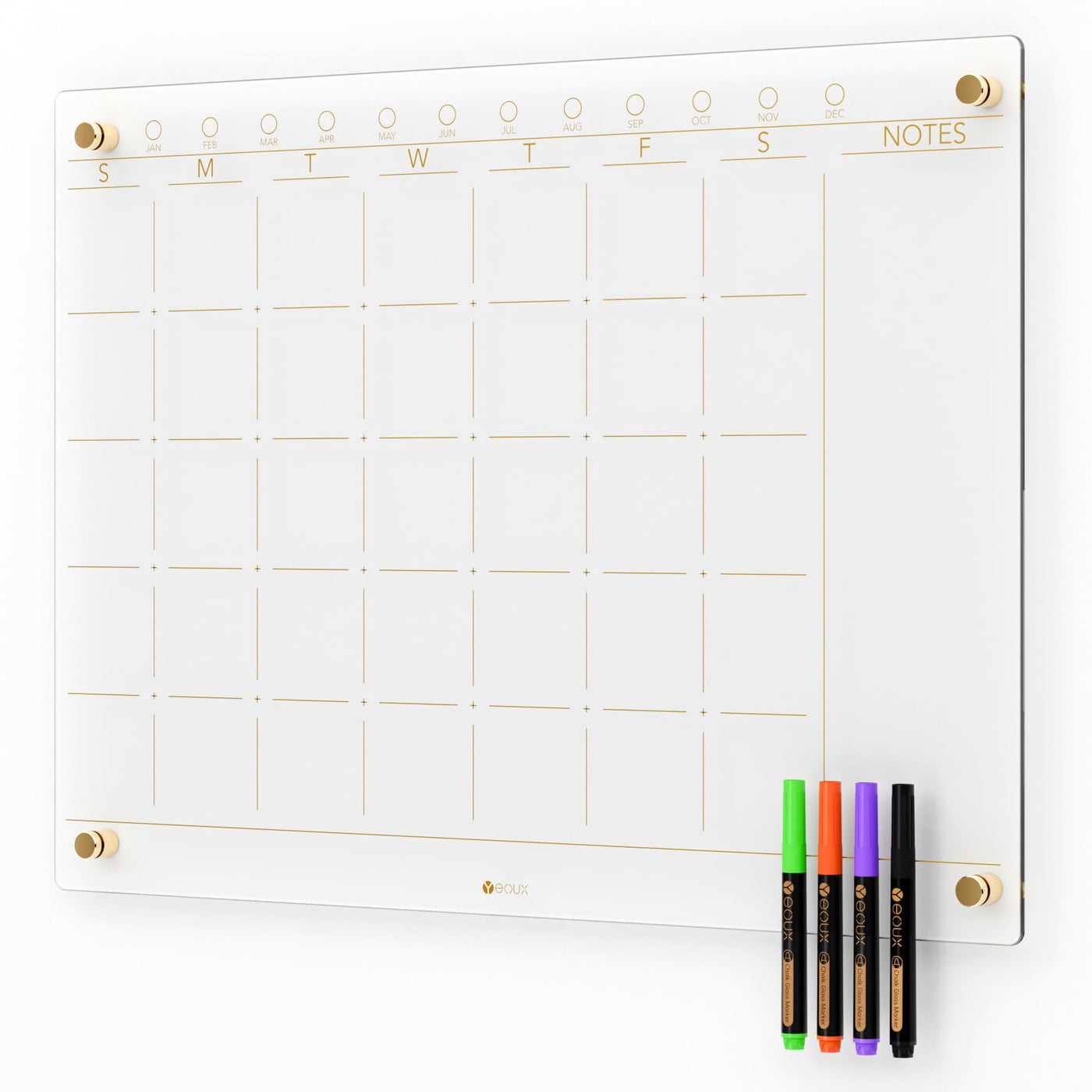 Clear Glass Monthly Dry Erase Calendar Whiteboard For Wall, 17' X 23', Frameless Large Monthly Menu Planner White Board Calendar For Home Kitchen & Office, 4 Wet Erase Markers Included, Yeoux