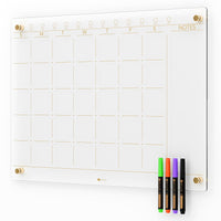 Clear Glass Monthly Dry Erase Calendar Non-Magnetic Whiteboard For Wall, 17' X 23', Frameless Large Monthly Menu Planner White