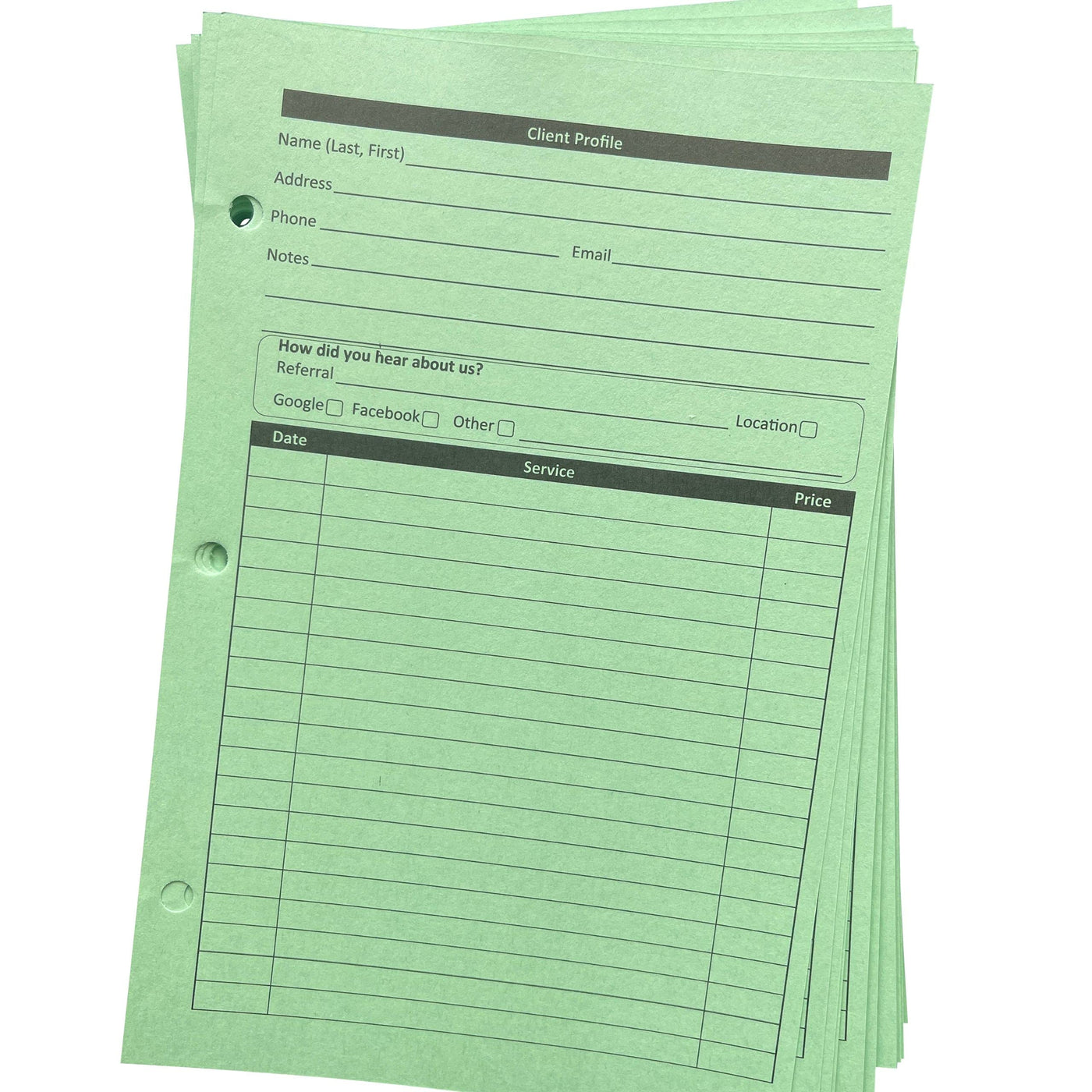 Client Record Book Hair Stylist, Green Stylist Binder Insert Cards (100 Per Pack, 5.5' X 8.5') Salon Client Profile Cards For