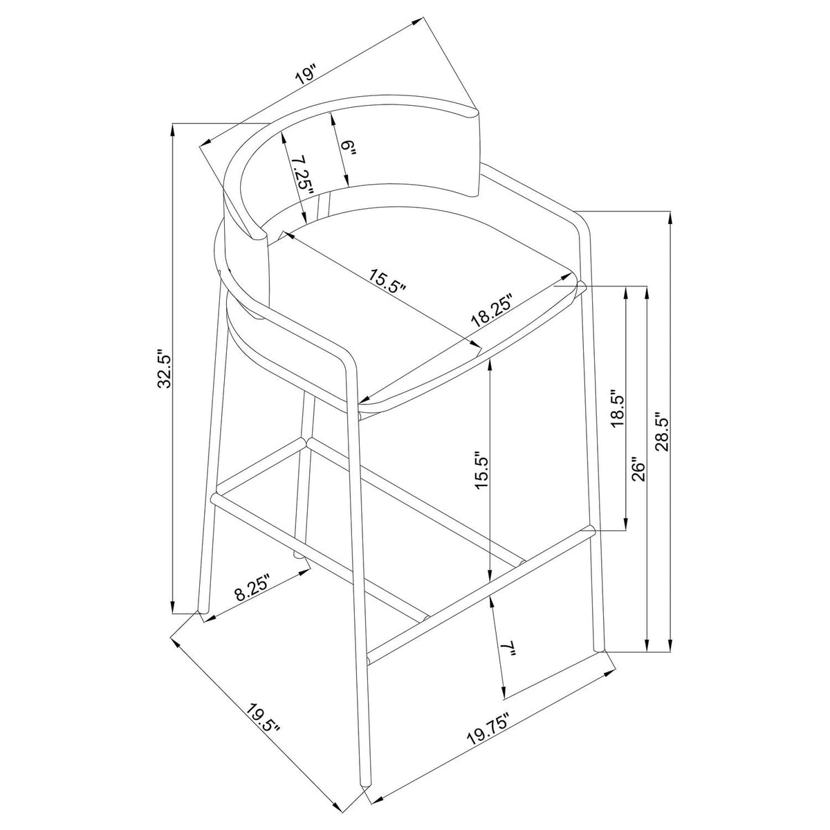 A soft and supple grey velvet envelops the comfy padded seat and linear backrest of this chic and glamorous stool. Situated and supported by a slim rod-like frame in a gold finish, this stool offers an air of sophistication to any bar top or kitchen island. The cool grey upholstery and warm metallic finish contrast, leaving a striking visual to any space. With a retro flair and glam vibe, this elegant stool is perfectly suited for a mid-century style home or contemporary entertainment room. Slide up this stool and relax with a cocktail or glass of wine.FeaturesSoft grey velvet upholstery envelops a padded seat and linear backrest, supported by a slim rod-like frame in a gold finish for a chic and glamorous look Contrasting cool grey upholstery and warm metallic finish create a striking visual, perfect for a mid-century style home or contemporary entertainment room Retro flair and glam vibe make this stool ideal for relaxing with a cocktail or glass of wine Comfy padded seat and linear backrest provide comfort and support Slim rod-like frame in a gold finish adds an air of sophistication to any bar top or kitchen islandDimensions:Counter StoolAssembled Product: 19.75 inches wide x 19.5 inches deep x 32.5 inches high Seat Depth: 15.5 inches Seat Height: 26 inches Weight Capacity: 300 poundsAt Coaster, we are your premier source for exquisite furniture, offering diverse styles to enhance every aspect of your life. Our passion for excellence drives us to innovate, crafting budget-friendly furniture that complements your lifestyle. Explore our brands for endless design inspiration and make your living experience exceptional with thoughtfully designed, affordable pieces that inspire a life well-lived.