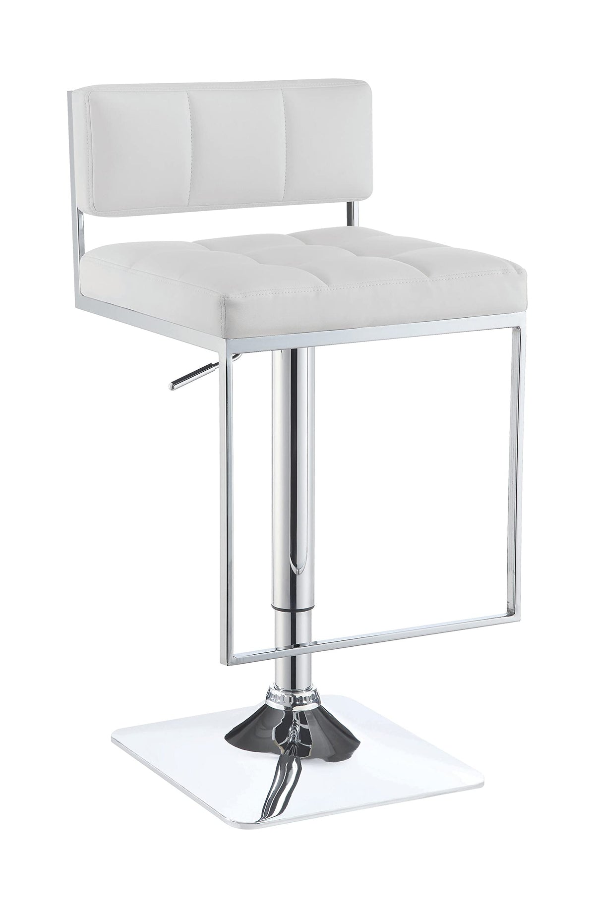 Pour yourself a glass of wine, take a load off your feet, and unwind after a hard day's work. Blissfully settle into the soft, relaxing comfort of this contemporary bar stool to gently soothe the day away. A strong, sturdy metal foot rest and soft, plush, back-supporting seat provide exquisite comfort and relief. Its modern design is accentuated by sleek lines, smooth upholstery, and the stunning shine of a chrome finish. This stool is stylish, compact, and easily adjustable, making it ideal for rooms of all sizes and decor styles.