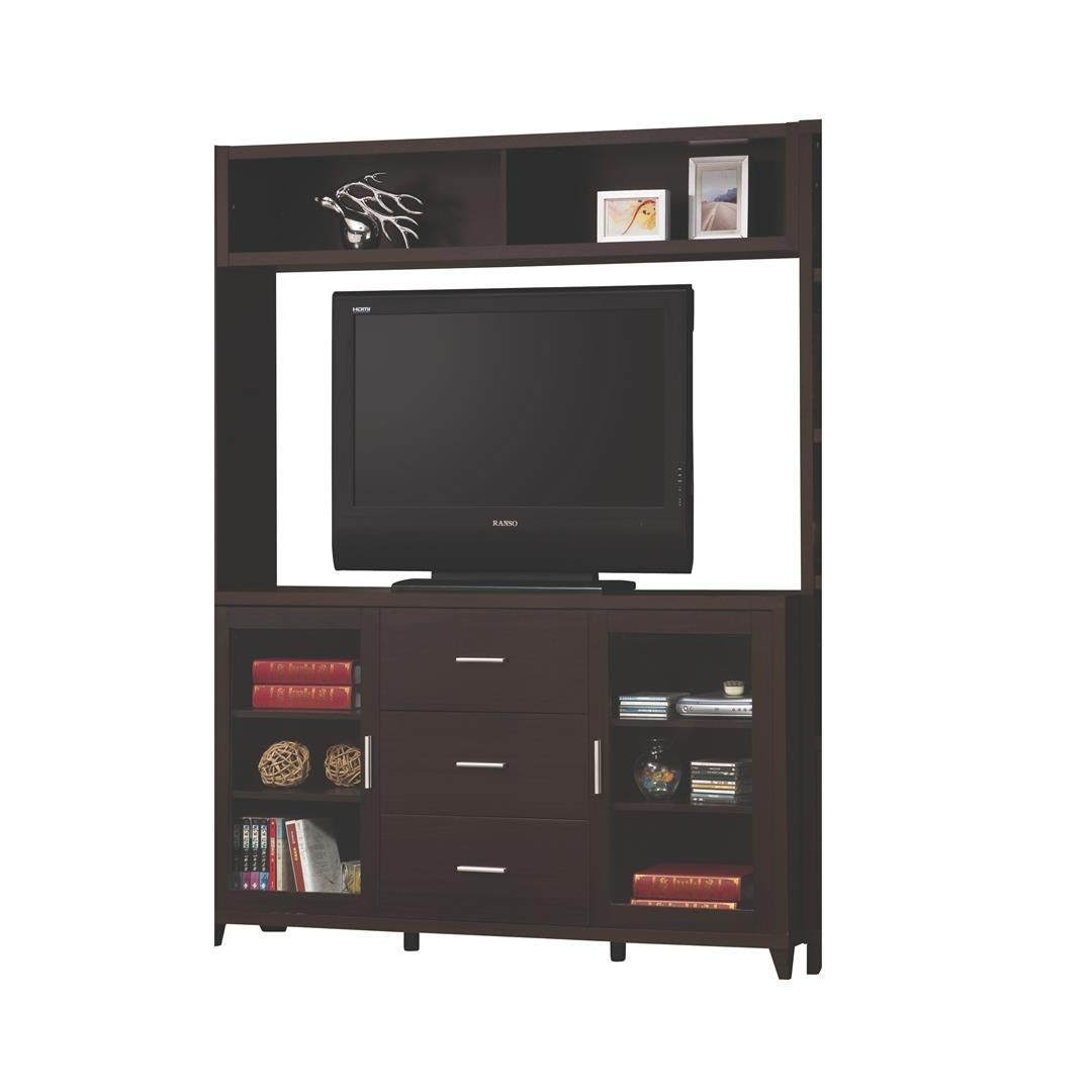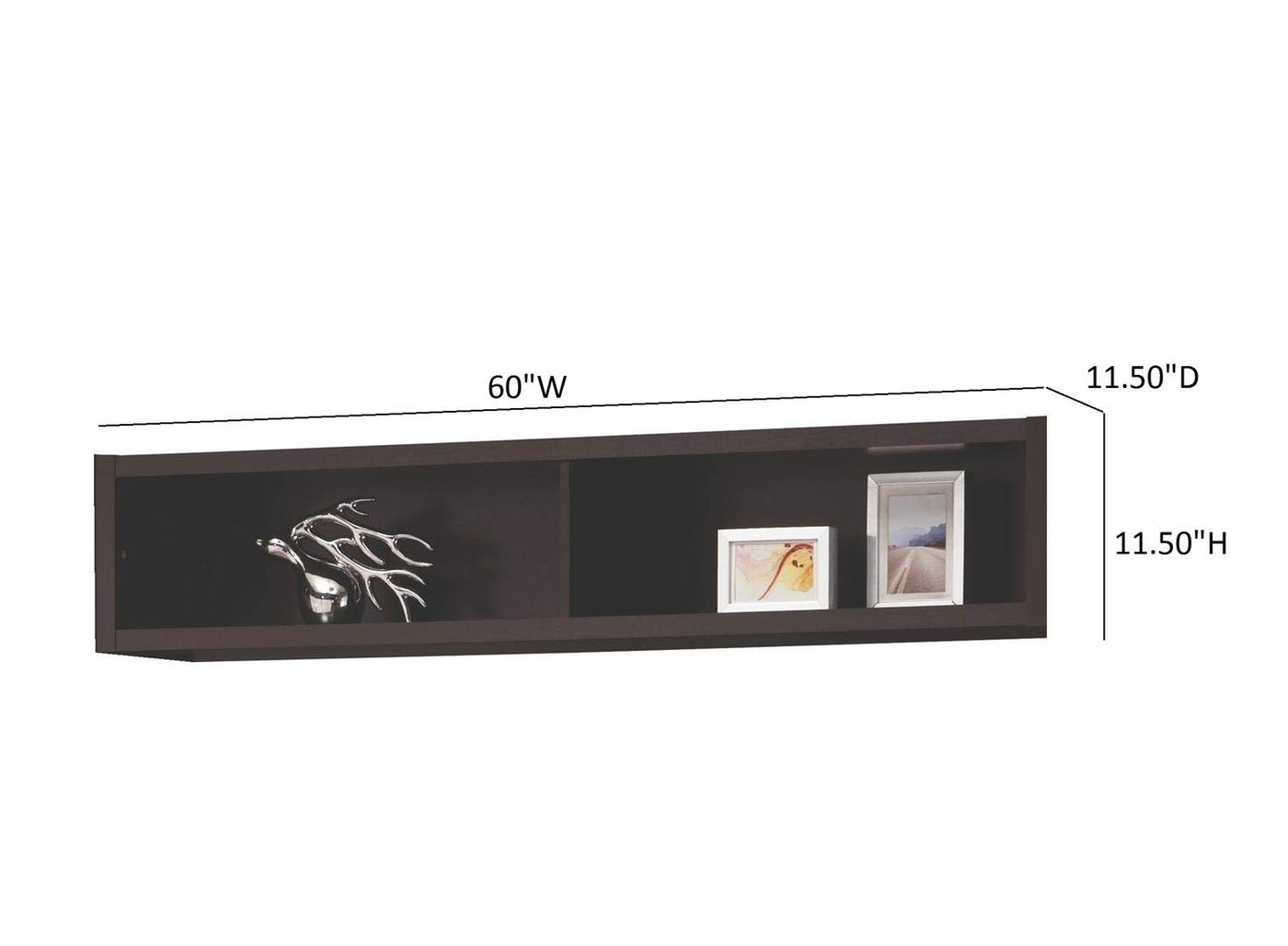This coaster contemporary Cappuccino Entertainment unit bridge measures 60" length, 11.5" Width, 11.5" Height. Bring all the pieces of your contemporary Entertainment unit together with this wooden bridge. Available in a rich Cappuccino finish, this bridge connects media Towers and console to create one cohesive look. Boost your storage options with this modern bridge piece.