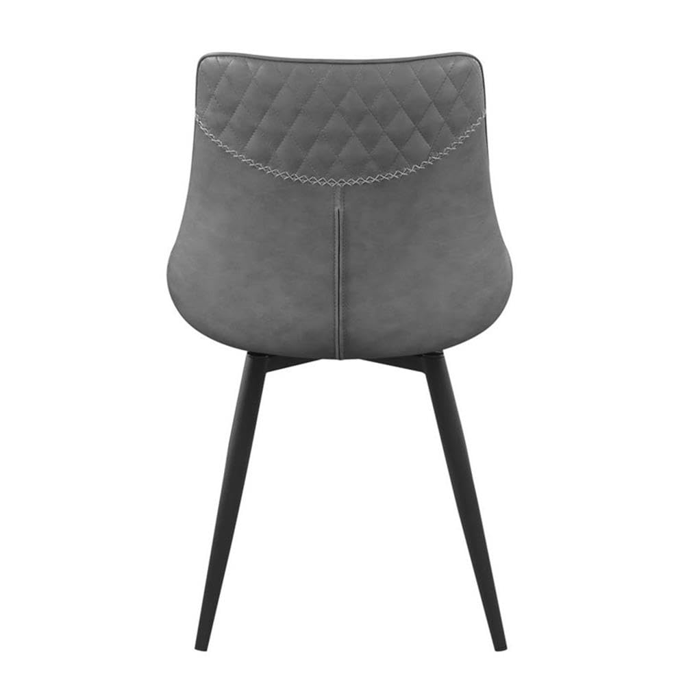 Stylish and uniquely detailed, this leatherette dining chair is sure to impress. Scooped seating and plush padding create a supremely comfortable seat. Quilted detailing on the back lends a pleasing touch of texture. Cross stitched embellishments add even more eye-catching allure. Hairpin legs round out the design for an infusion of mid-century modern charm.