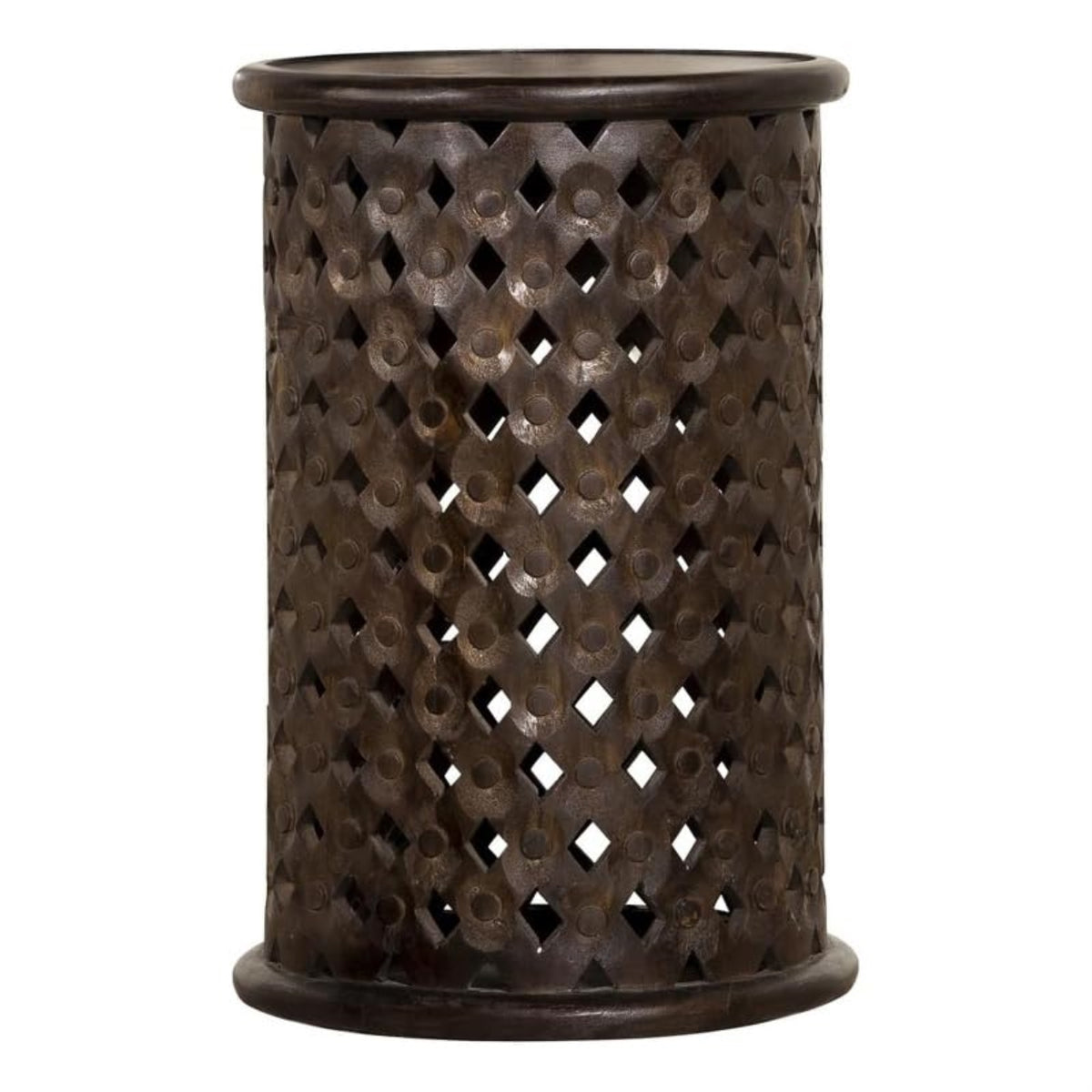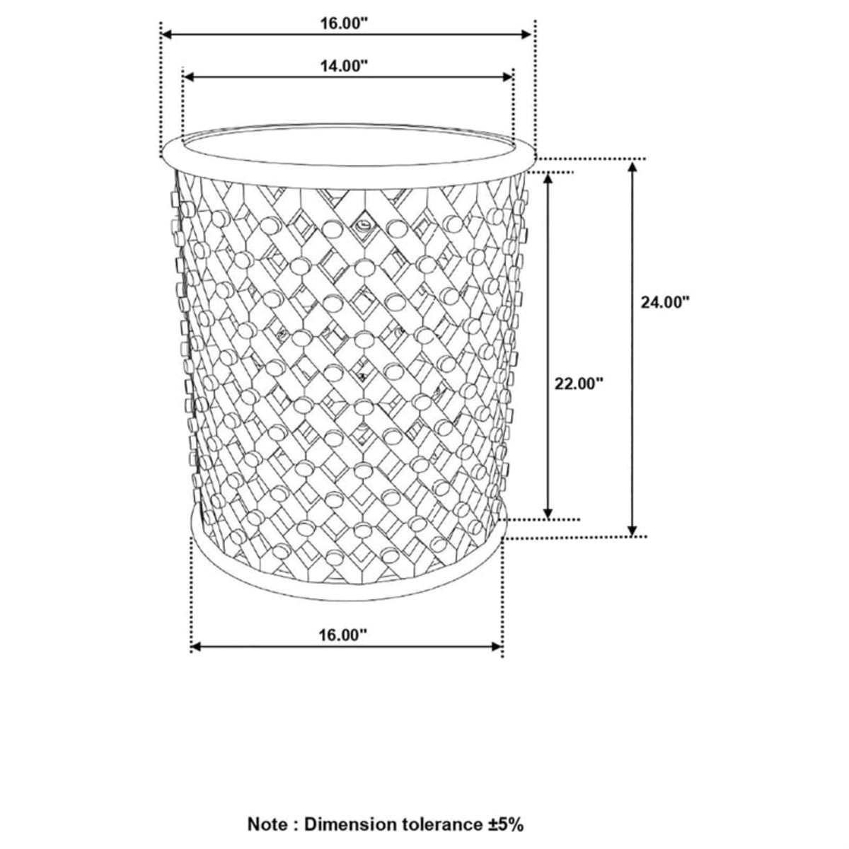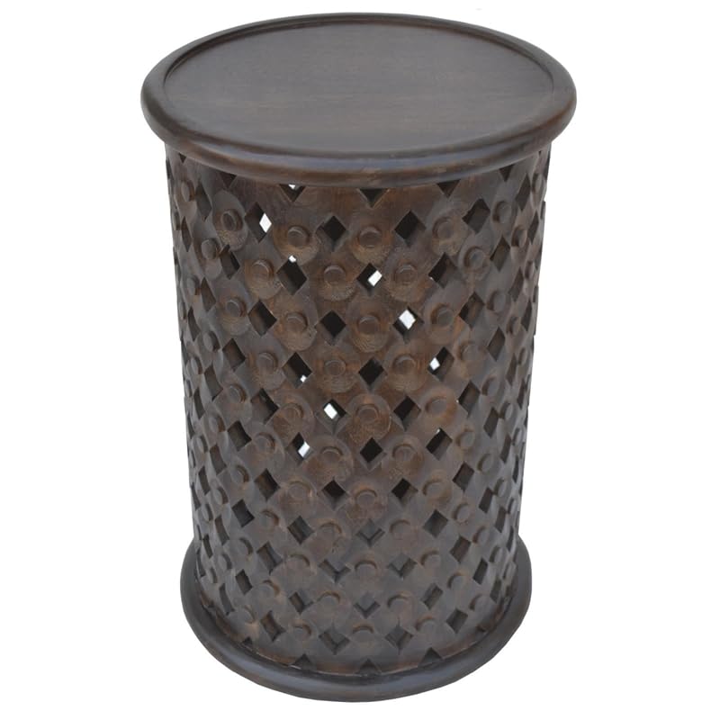 It's the finishing touches that bring the wow factor to your decor and this carved accent table does exactly that. Ornate carvings create texture and dimension, allowing light to peek through a charming lattice-like pattern. The table is crafted from 100 percent mango wood that's eco-friendly and offers an earthy design element. The drum-shaped table is ac harming choice flanking a sofa or armchair, creating an artistic element to elevate your space. Boho charm infuses the symmetrical table, which delivers a smooth top perfect for refreshments or a vase of fresh flowers.FeaturesAdd a bit of boho style and visual interest into your home with this round wood accent table Intricately carved of 100% eco-friendly mango wood side table with a textured lattice design Drum-shaped silhouette is perfect for a living room nook or seating area Smooth tabletop with a pronounced lip that matches the base of the table to add symmetry The perfect height unifying a sofa and loveseat or flanking an armchairDimensions:Side TableAssembled Product: 16 inches wide x 16 inches deep x 24 inches high Weight Capacity: 25 poundsAt Coaster, we are your premier source for exquisite furniture, offering diverse styles to enhance every aspect of your life. Our passion for excellence drives us to innovate, crafting budget-friendly furniture that complements your lifestyle. Explore our brands for endless design inspiration and make your living experience exceptional with thoughtfully designed, affordable pieces that inspire a life well-lived.