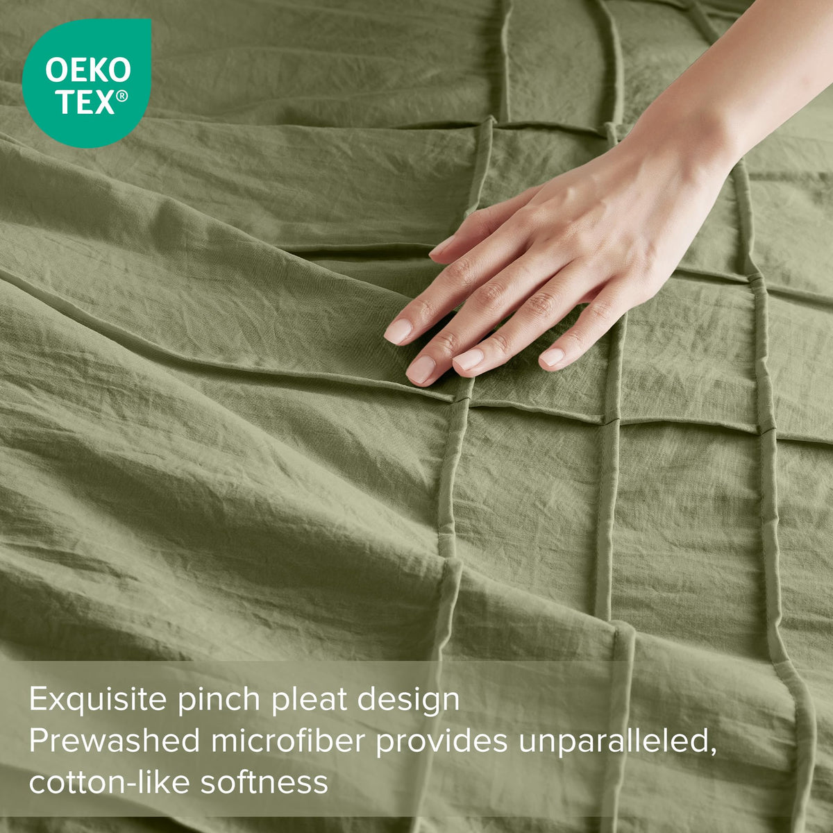 Comfort Spaces Olive Green King Size Comforter Set - 3 Pieces Pintuck Pleated Bedding Sets King, All Season Lightweight, Extra Softness Pre-Washed Microfiber King Bed Set, Shams, King