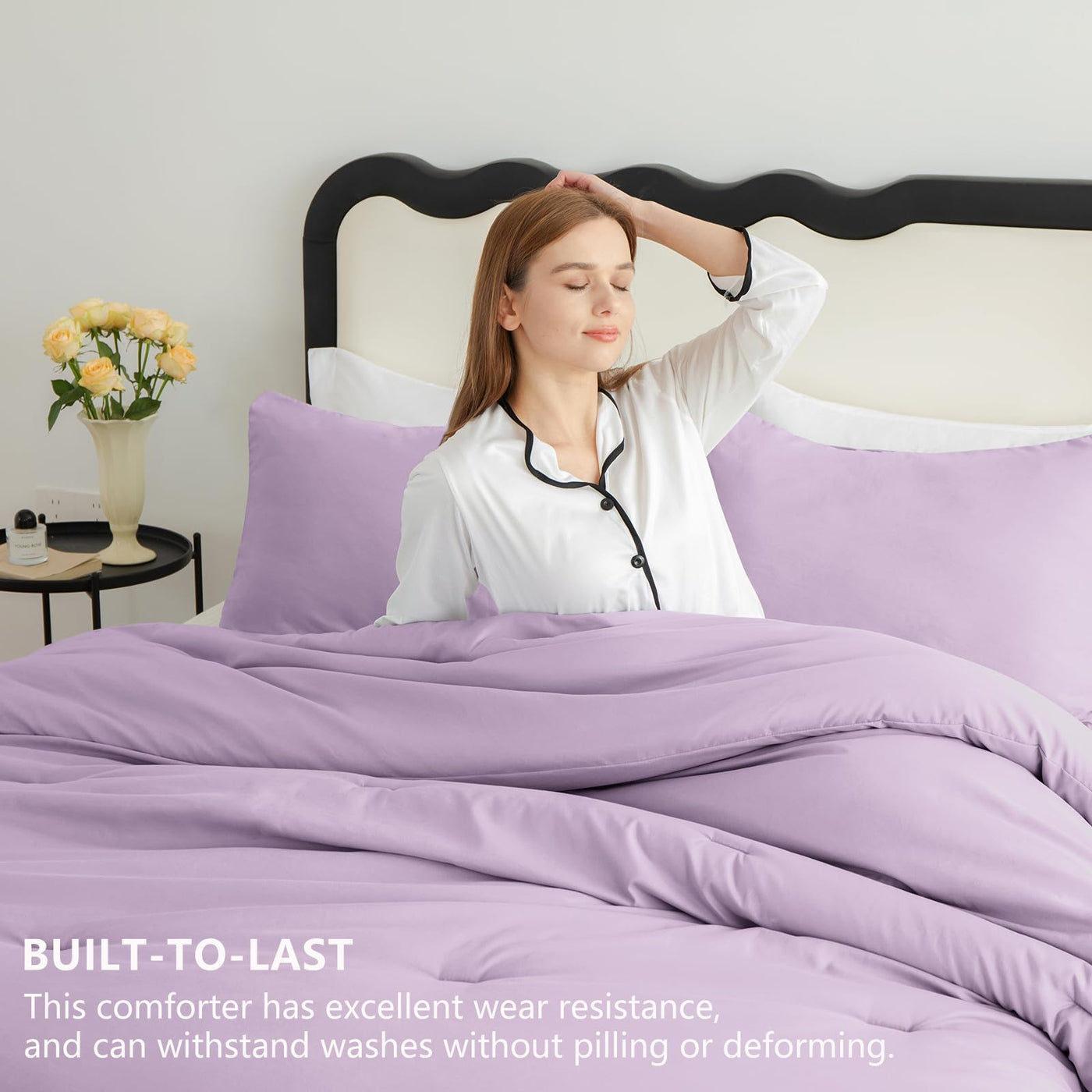 Cozylux Lavender Purple Comforter Set King Size, 3 Pieces Solid Breathable Quilted Boho Style Bedding Sets, Luxury Fluffy Soft Microfiber Comforter For All Season(1 Comforter & 2 Pillowcases)