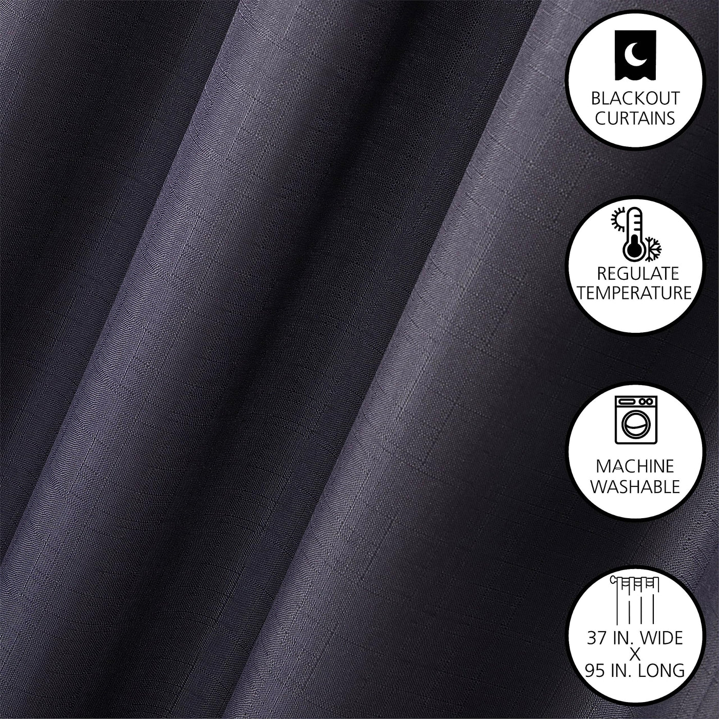 Q: What are the dimensions of the Dearfoams blackout curtain panels?A: The Dearfoams blackout curtain panels measure 37 inches wide and are available in three lengths: 63 inches, 84 inches, or 95 inches.
