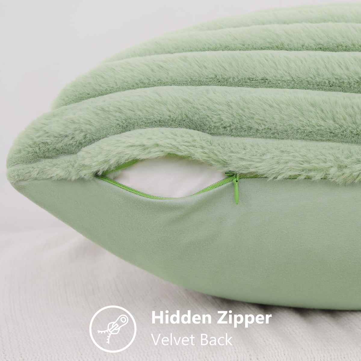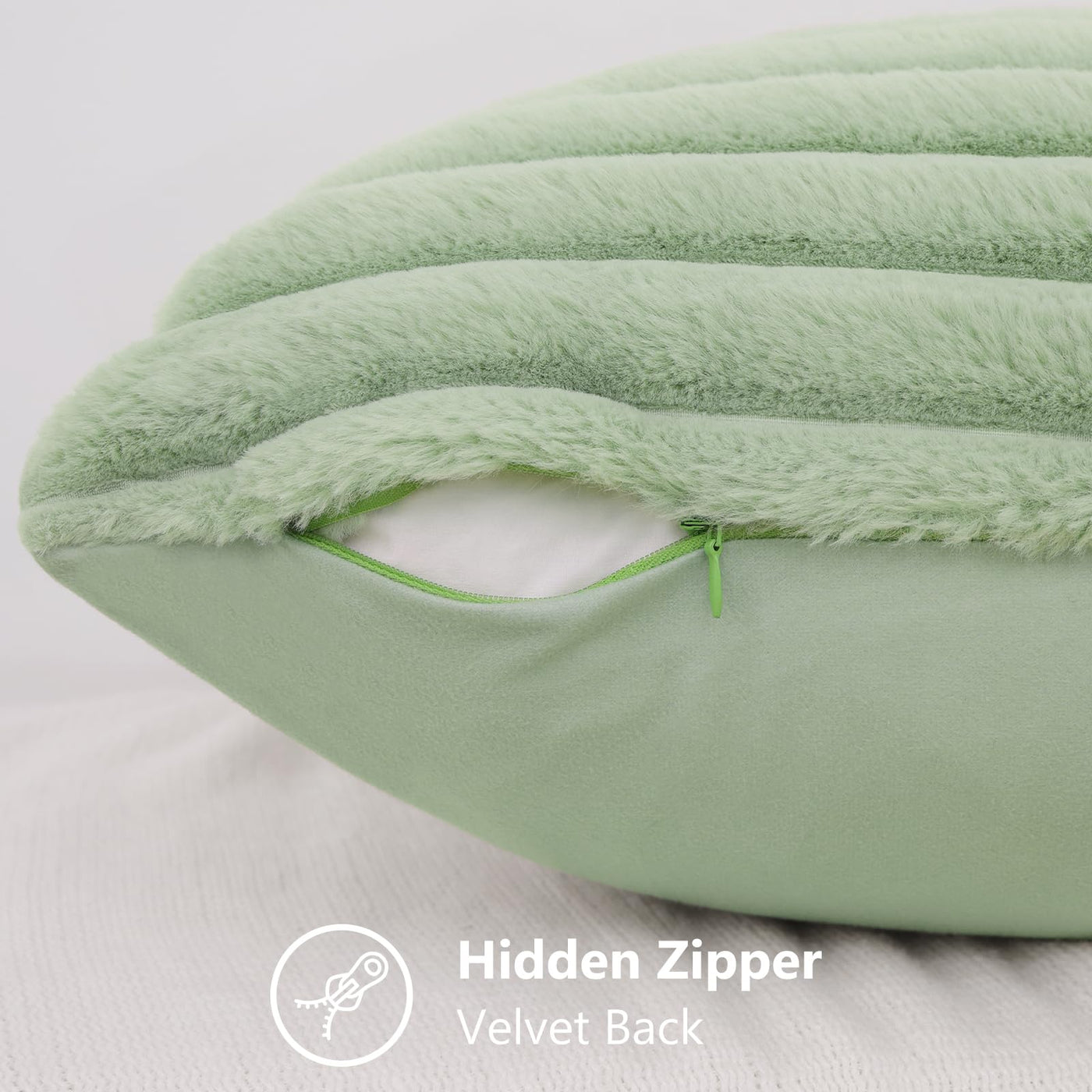Decoruhome Faux Fur Spring Throw Pillow Covers 16X16 Set Of 2, Decorative Soft Plush Striped Couch Pillow Covers With Velvet Back For Sofa, Bed, Living Room, Sage Green