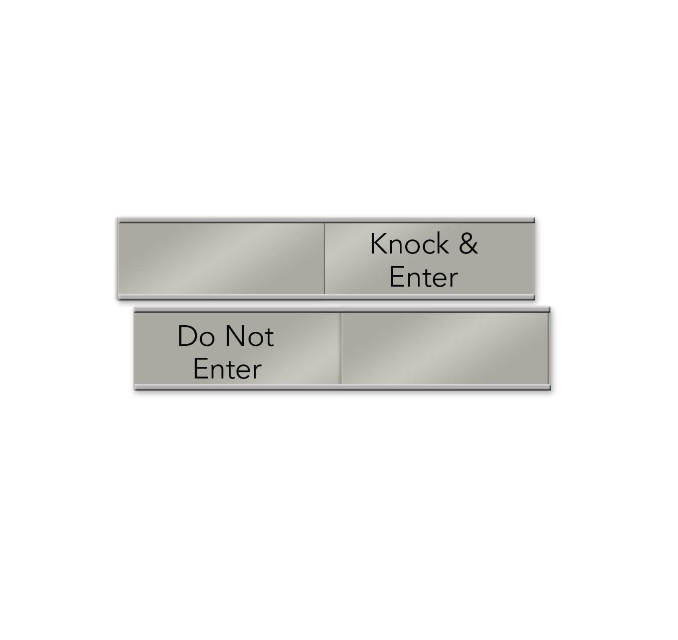 Slider Nameplate And Sign. Slider Sign Comes With Adhesive Backing, Perfect For Wall Or Door. Sign Displays 'Do Not Enter' And 'Knock & Enter.' Sign Is Made Of Durable Aluminum, Measures 6' X 1'.