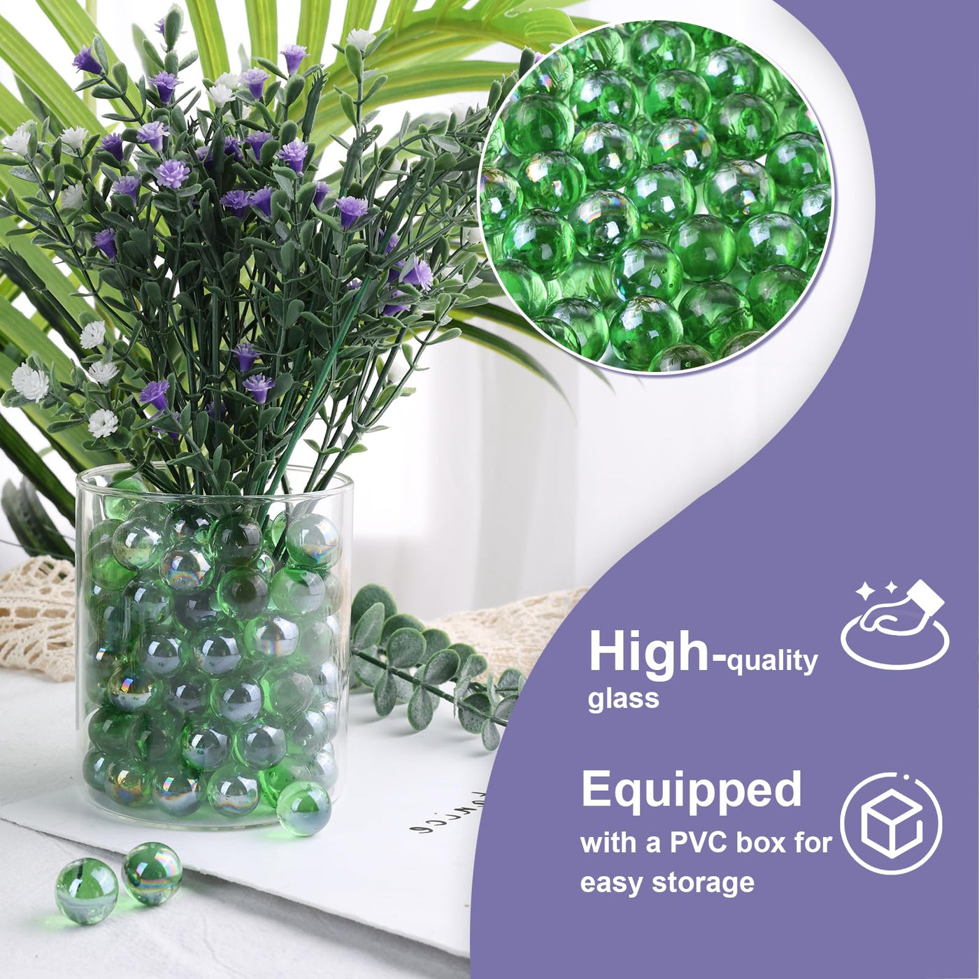 Q: How should I store the glass marbles to prevent damage?A: To keep the glass marbles in excellent condition, store them in the provided clear PVC box, which protects them from chipping, cracking, and clashing.