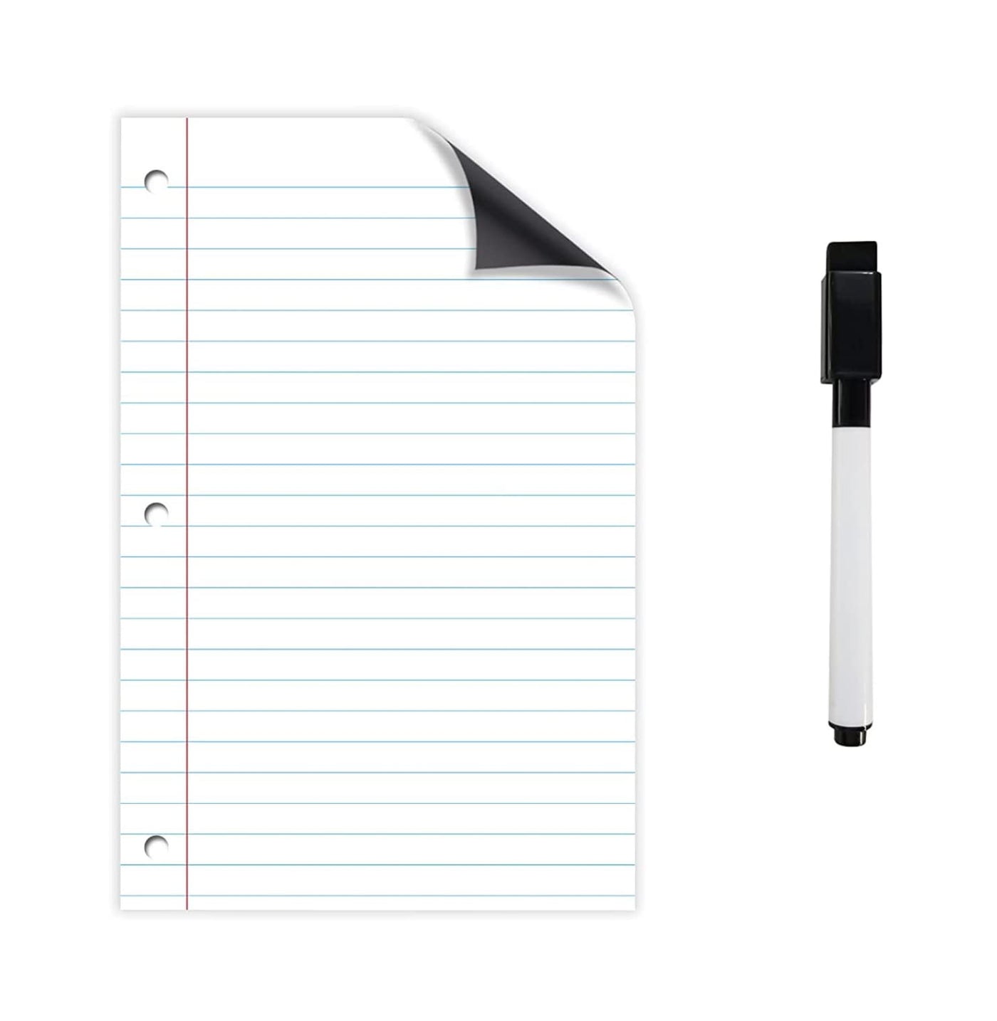 Dry Erase Magnetic Sheet - Notebook Design. 11X17 Inches. Comes With 1 Black Dry Erase Magnetic Fine Tip Marker With Eraser.