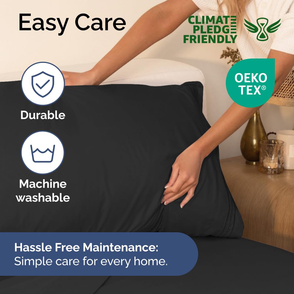 Extra Deep Pocket King Sheets - 4 Piece Breathable & Cooling Bed Sheets - Hotel Luxury Bed Sheet Set - Soft, Wrinkle Free & Comfy - Easily Fits Extra Deep Mattresses - Deep Pocket Black Sheets Set