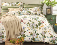 Fadfay Floral Duvet Cover Set 100% Cotton Green And Beige Striped Shabby Flower Bedding Branches Summer Bedding Reversible 600 T