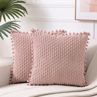 Fancy Homi 2 Packs Dusty Pink Decorative Throw Pillow Covers 18X18 Inch With Pom-Poms For Couch Bedroom Living Room, Farmhouse B