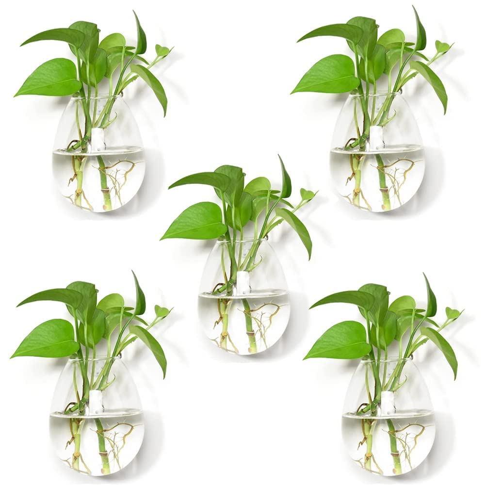 Fashiostorm 5 Packs Wall Hanging Planters Glass Plant Pots Water Containers Flower Air Terrariums Terrarium, Clear