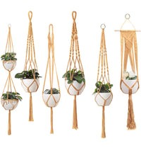 Feedee Macrame Plant Hangers - 6 Pack, Brown, Indoor/Outdoor, 11.9 Lbs Capacity, Ready To Hang