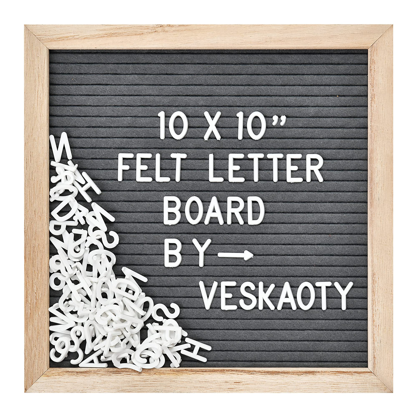 Felt Letter Board With 294 Letters, Numbers & Symbols - 10 X 10 Inch Changeable Message Board With Wooden Frame Wall Mount Hook,