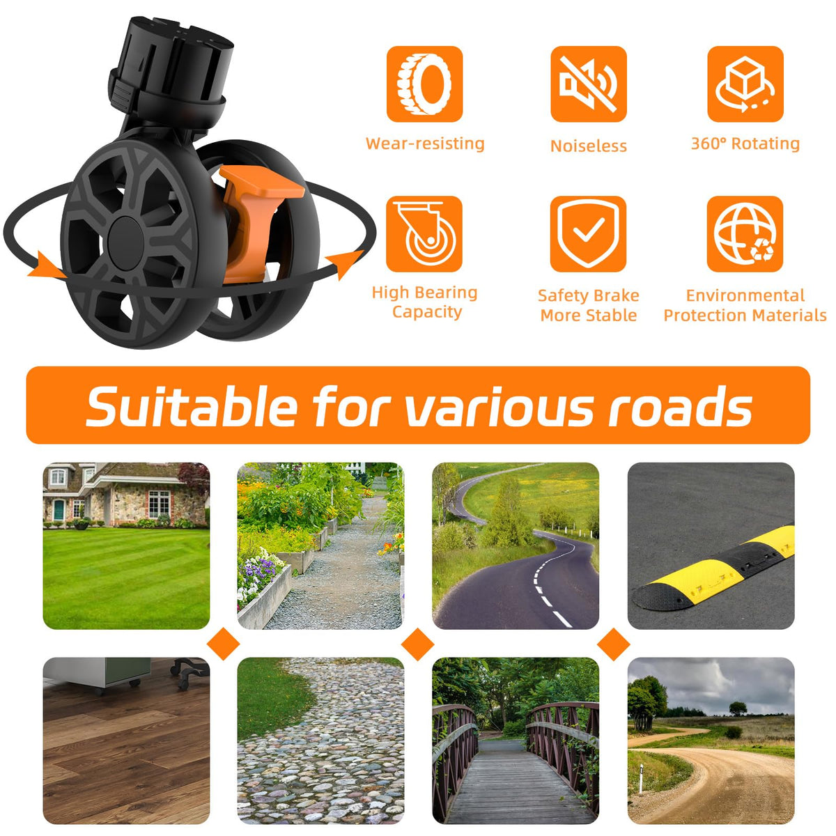 Package List: 2x 360° Rotation Noiseless Wheels (one of them has brake)